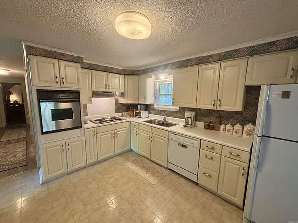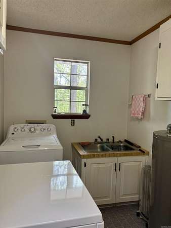 Welcome to your private retreat in White Hall, situated on 3.12 acres within city limits. This property offers space, privacy, and convenience surrounded by mature trees and a peaceful setting. The home exudes classic Southern charm and features a large front porch, perfect for relaxing and enjoying the wooded views. The property also adjoins an undisturbed forest, enhancing privacy and natural beauty. Originally a 1977 double-wide mobile home, the residence has been improved over time and is on a permanent foundation. Additions include a spacious great room/den, primary bedroom suite, and a large walk-in closet, creating a more functional layout. Inside, you’ll find a formal living room, cathedral-ceiling den, and new vinyl flooring in the entryway, hallway, and one bedroom. Enjoy cozy evenings by the wood-burning fireplace. A 156 sq. ft. basement provides additional storage or flexible space. Exterior features include two large storage sheds, an additional carport, a newer roof (2019), and seamless gutters. A rare opportunity to own acreage in town with privacy, charm, and room to grow!