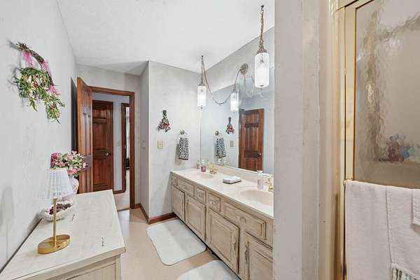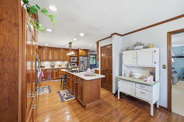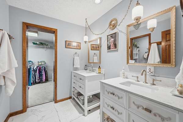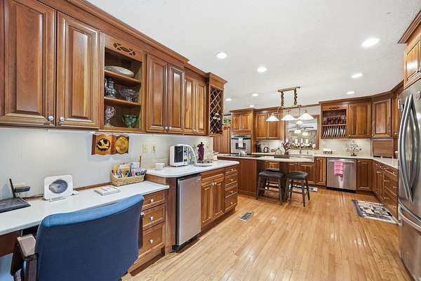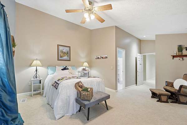 - Breakfast Bar, Cathedral Ceiling(s), Ceiling Fan(s), Chandelier, Double Vanity, Eat-In Kitchen, Entrance Foyer, Granite Counters, Kitchen Island, Natural Woodwork, Pantry, Vaulted Ceiling(s), Walk-In Closet(s)