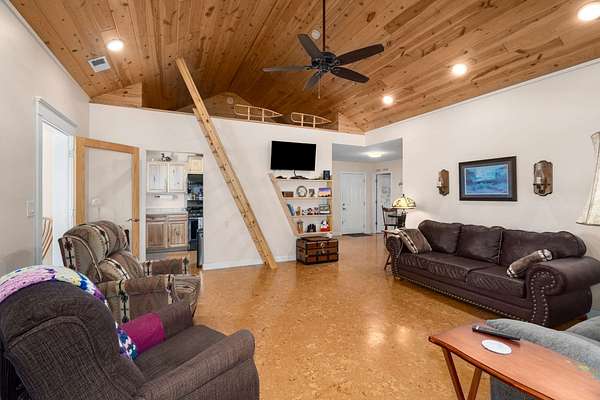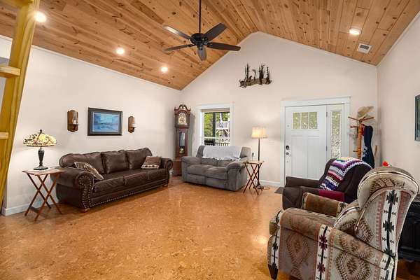 Discover the serenity of rural Dickson with this rare offering of two homes on twenty-two (22) + acres at 611 Rocky Dr. The centerpiece is a custom 40x60 barn-style home with an added sunroom/dining room, built in 2017, featuring approximately 1,300 sq. ft. of living space with 2 bedrooms and 2 full baths. Adding to the charm, a recently renovated 476 sq. ft. cabin provides a cozy retreat with 1 bedroom, 1 bath, and a durable metal roof. Rent it out separately or use for a guest house. The expansive acreage opens the door to endless possibilities—whether you envision farming, expanding, or simply enjoying the natural beauty and privacy of the countryside. Offering both seclusion and convenience, this property is a true Tennessee treasure. Low property taxes due to being in the Greenbelt program. There is also a small pond on the property on the right side of the driveway. This property can be combined with 607 Rocky Dr that comes with another Barndo and five (5) acres.