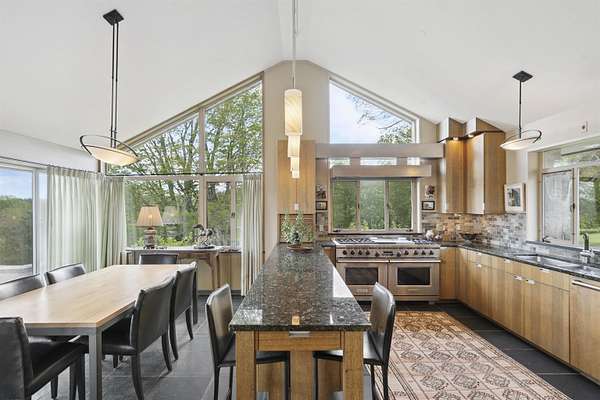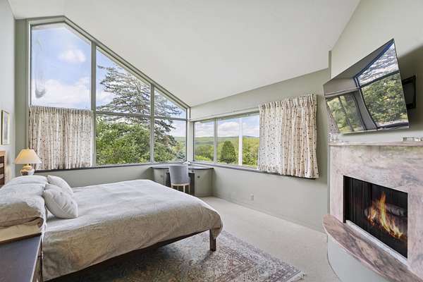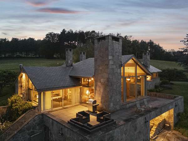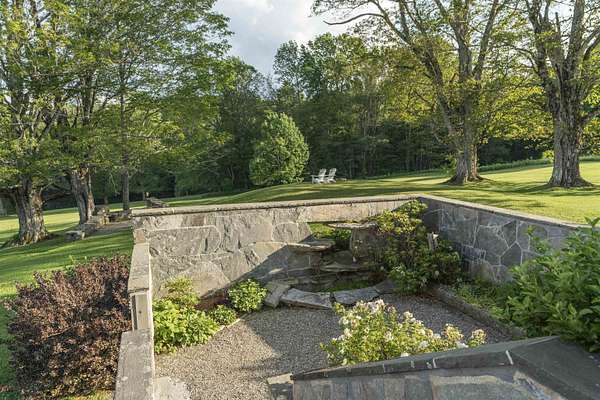 Skygate Farm is a historic Vermont farmstead first settled in the 1800s, which today spans over 300 acres of meadows, forests, trails, and weathered stone walls. The setting speaks of an early farmer's wisdom -- sited along a gentle hill to shield against the northwest winds, while opening to the first light of day and the vast mountain views to the east. Found at the end of a winding gravel road, the place offers complete privacy and a deep, restorative tranquility. In a later chapter, a mid-century modern stone residence was built to frame these views and capture the natural light--conceived as a summer retreat and a winter getaway for ski outings. Families gathered here for picnics at the top of the meadow, long swims in the clear, spring-fed pond, and walks along the trails picking blackberries. Inside, a silver movie screen drops from the ceiling for evening films by the fire. Custom closets store fly rods, skis, and gear for every season. Two wood-burning fireplaces bring warmth on cooler days. The deep, detached garage offers ample space for cars, equipment and tools. For the last 25 years, this haven has been a full-time residence. Bluebird houses line the fields, perennial gardens bloom seasonally, and flocks of goldfinch move through the meadows in waves. The land also offers potential for regenerative farming with 29 acres of open meadow and mature maples for sugaring. A solar array has 48 panels. Showings begin July 10