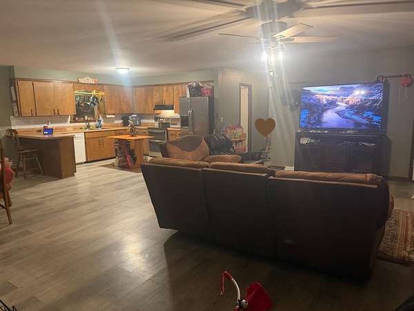 Heart of the Home: Open-concept Kitchen, Dining, and Living area--greatfor keeping an eye on everyone while you cook.