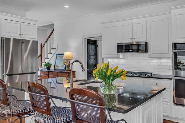 - Built-In Electric Oven, Dishwasher, Disposal, Double Oven, Gas Range, Microwave, Refrigerator, Stainless Steel Appliance(s)