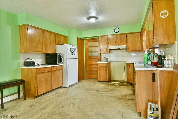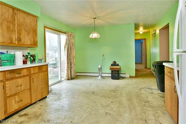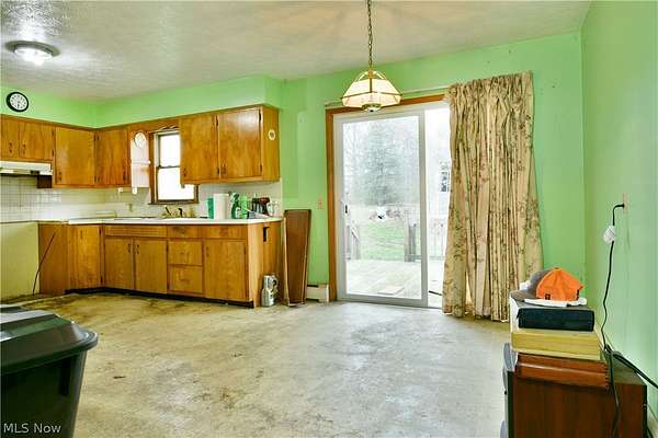 Potential, potential, and potential! This endearing Bristolville residence checks all the right boxes for a perfect project, ready to receive your creativity with its great bones and even better layout! Serving up everyone's favorite ranch layout, the home ups the ante with a three-bedroom layout plus a full basement below with tall ceilings and a brick fireplace, allowing an easy opportunity for even more finished living space. Outside, the brick accents add to the covered, two-car garage and porch entrances, both with brand new and stylish entry doors. Rural surroundings ensure peaceful, scenic views as you make your way inside. A gracious living room enjoys a large picture window to introduce plenty of natural light. Take advantage of the impressive kitchen and combined central dining space as sliding doors open to the raised rear deck out back. A hidden pantry is located next to the garage access. Down the main hall, a brightly colored full bath is renovation-ready, while the trio of bedrooms completes the package to include a larger master with its own private half bath. Property is being sold "AS IS", "WHERE IS''. CASH ONLY! The seller is currently having the property re-surveyed and it will come with approximately 1.6 acres only!