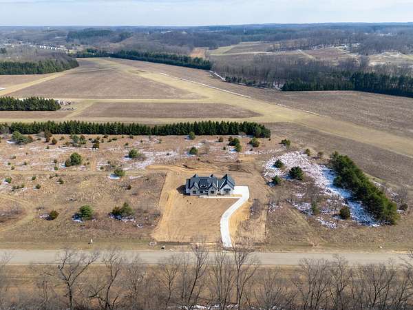 Welcome to Mattawan Airpark Estates, Mattawan's newest luxury community located just outside the village & minutes from everyday conveniences. This stunning 5 bedroom, 3.5 bath ranch by Chateau Homes sits on 1.6 acres & features a fully finished basement. Step inside to a grand foyer & open concept living with soaring 12' cathedral ceilings & expansive windows that fill the home with natural light. The great room offers a striking fireplace with custom built-ins. The kitchen features an oversized center island, breakfast bar, & dedicated coffee bar, plus a seamless transition into the dining area. Just off the kitchen, you will find a walk-in pantry with a wine cooler & prep sink, along with a convenient mudroom & half bath. Enjoy a large covered patio, perfect for entertaining. The primary suite features dual vanities, a spa inspired walk-in shower, soaking tub, & spacious walk in closet. The main level also includes an additional bedroom, office or 3rd bedroom, full bath, & laundry. The finished basement offers a large family room, additional bedroom, exercise room or 5th bedroom, & full bath. Enjoy a Smart Home System that controls security, doorbell camera, garage doors, thermostat, outdoor lighting, & more, all from one app. Don't miss this incredible opportunity at Mattawan Airpark Estates.