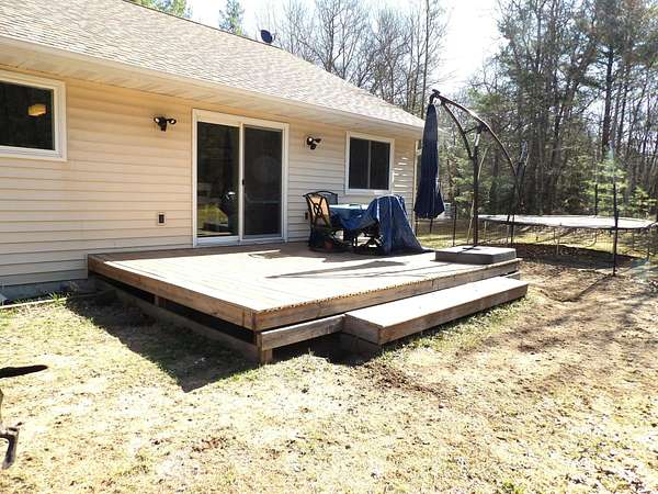 Located just minutes from Rhinelander in a quiet setting, this well-maintained 3-bedroom, 2-bath home offers comfort, privacy, and modern updates on a beautifully wooded 2.5-acre parcel. The thoughtfully designed split floor plan places the primary suite on one end-complete with an electric fireplace, walk-through closet, and full bath-while two additional bedrooms, a second full bath, and main-floor laundry are situated on the opposite side. The heart of the home features an open-concept kitchen, dining, and living area with vaulted ceilings and an inviting electric fireplace-perfect for gathering and entertaining. Step outside to enjoy a spacious backyard and a low-maintenance composite sundeck ideal for relaxing or hosting. Additional highlights include maintenance-free vinyl siding, a 2-car attached garage, paved driveway, conventional septic, and a 6" drilled well. The unfinished lower level is already plumbed for an additional bathroom, offering excellent potential for future living space. Peace of mind comes with a Generac whole-house generator for seamless automatic power backup, along with major updates, including new windows and doors, and a new furnace with an air purifying system installed in 2023. Move-in ready and packed with value-schedule your private showing today!
