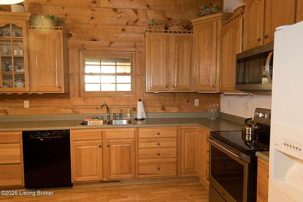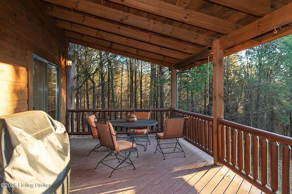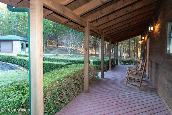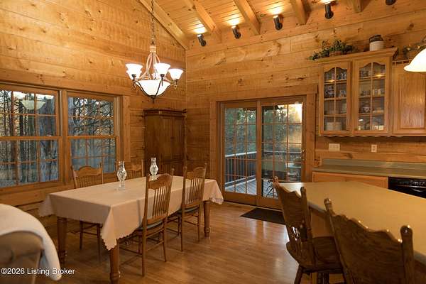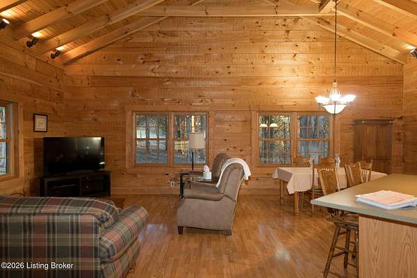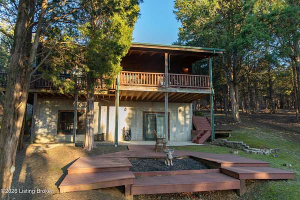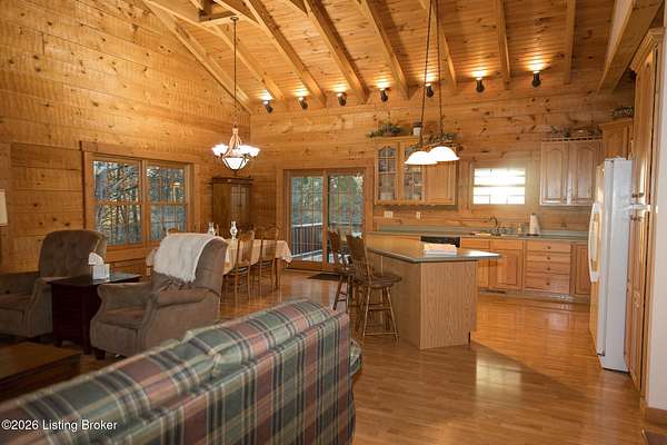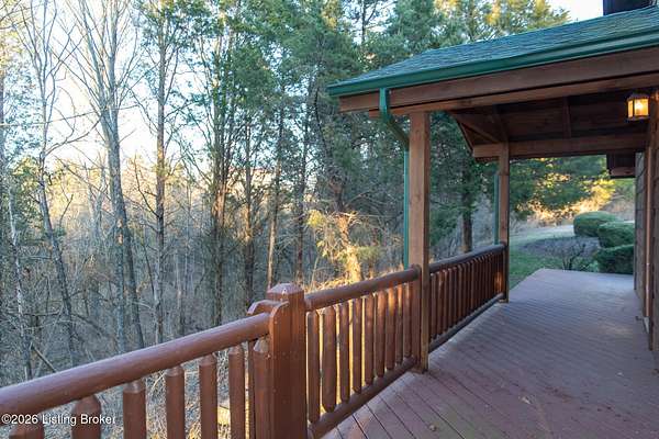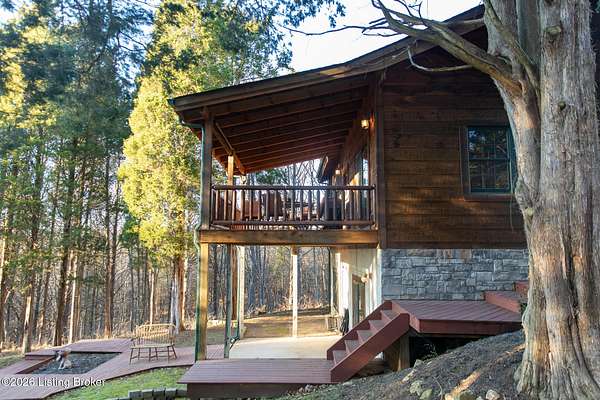 Escape to your own private rustic 3 bedroom, 3 bath cabin retreat on 9+ wooded acres with peaceful valley views. Featuring stick-built construction and hand-hewn siding, it's perfect for buyers seeking privacy, acreage, and move-in-ready country living. A concrete driveway with two entrances offers easy access, plus a 2 car detached garage for vehicles or workshop space. Relax on the covered front porch or enjoy the valley views from the back deck. Inside, the open floor plan connects the living room and kitchen for comfortable everyday living. The kitchen features oak cabinets, a movable island (included), and updated appliances including a stove/range (2024) and microwave (2025). The electric water heater was replaced in 2024. The layout includes one main level bedroom and bath, with a