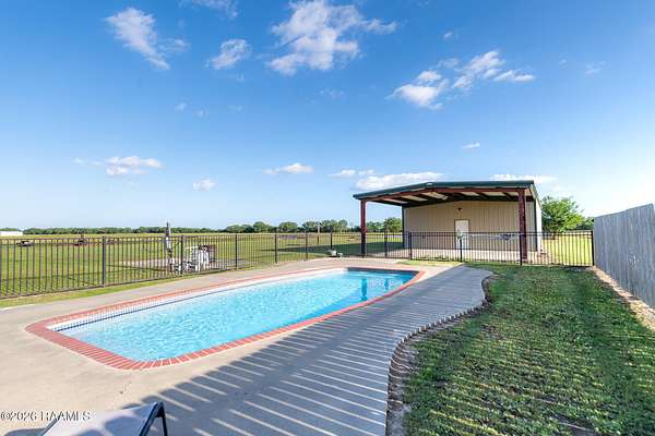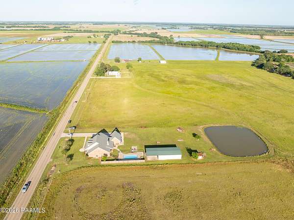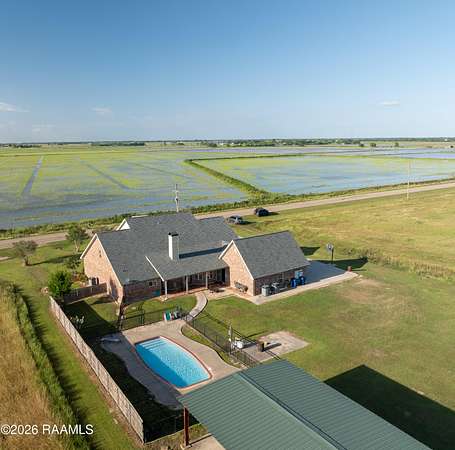 Welcome to your private Louisiana retreat in Morse! Nestled on 5.66 picturesque acres, this stunning two-story brick home offers an impressive 5,030 square feet of thoughtfully designed living space, combining comfort, elegance, and scenic beauty. Featuring 4 spacious bedrooms and 3.5 baths, this home is perfect for both everyday living and entertaining. Step inside to find soaring 9-foot ceilings, rich finishes, and a warm, inviting atmosphere. The living area is anchored by a versatile wood- and gas-burning fireplace, creating the perfect focal point for cozy evenings. The gourmet kitchen boasts beautiful marble countertops, ample cabinetry. The luxurious primary suite offers a spa-like bath complete with a soaking tub, double vanities, and plenty of room to unwind. Outdoors, enjoy your own private oasis with an in-ground fiberglass pool, ideal for relaxing or entertaining on warm Louisiana days. The expansive property also includes a large shop, perfect for hobbies, storage, or workspace needs. Take in the breathtaking views of the surrounding countryside and the serene pond, offering a peaceful backdrop that truly sets this property apart. With a 2-car garage and plenty of open space, this home provides the perfect balance of privacy and convenience. Don't miss the opportunity to own this exceptional property where comfort meets country living at its finest.