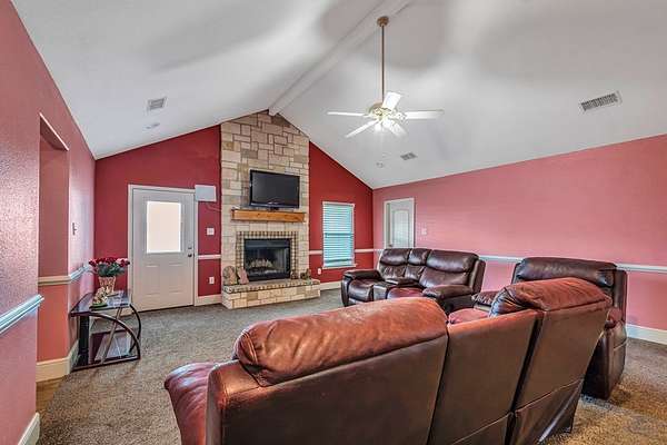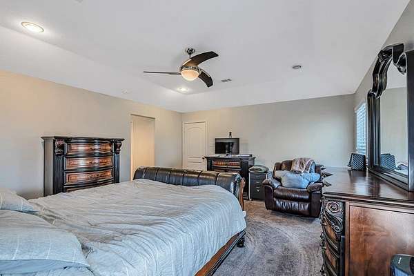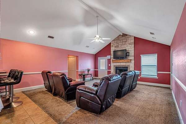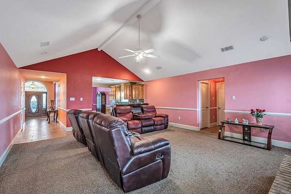 - Carpeting, Ceiling Fan(s), High Ceilings, Pantry, Shades/Blinds, Smoke Detector(s), Tile Flooring