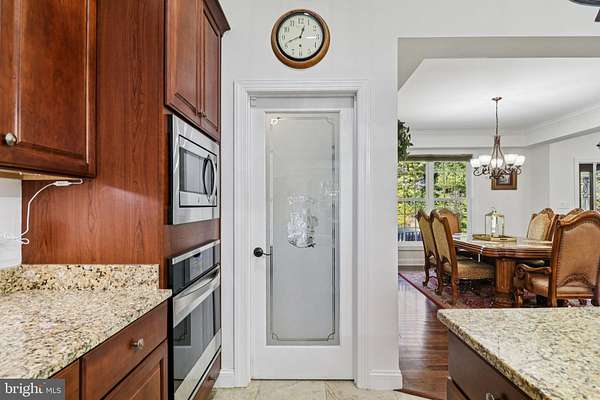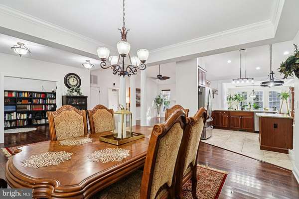 - Attic, Built-Ins, Carpet, Ceiling Fan(s), Chair Railings, Crown Moldings, Eat-In Kitchen, Entry Level Bedroom, Family Room Off Kitchen, Formal/Separate Dining Room, Gourmet Kitchen, Island Kitchen, Pantry, Primary Bath(s), Recessed Lighting, Sprinkler System, Upgraded Countertops, Wainscotting, Walk-In Closet(s), Walk-In Shower Bathroom, Wet/Dry Bar, Wood Floors