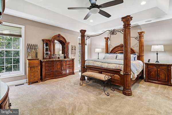 If luxury is what you're looking for, this stunning custom-built ranch home delivers that and so much more! Set on 5 private acres, this property offers the perfect blend of sophistication, comfort, and functionality-all within minutes of I-95, VRE, commuter lots, and shopping. Inside, recent updates include fresh Benjamin Moore "Swiss Coffee" paint in the living room, sunroom, office, 2nd bedroom, basement family room, and 4th bedroom. The home features 5 bedrooms, with 4 boasting walk-in closets, and smart home technology with a router, server, and Nest thermostats on both levels for dual-zone comfort. The gourmet kitchen is a chef's dream-complete with stainless steel appliances, granite countertops, 42" cabinetry, vaulted ceiling, recessed lighting, ceramic flooring, breakfast bar, and a massive walk-in pantry. Just off the kitchen, the sunroom shines with a tray ceiling with lighting, French doors, and custom entryway molding, filling the space with natural light. The family room features a gas fireplace with marble surround, vaulted ceiling, hardwood floors, and recessed lighting, offering a cozy and inviting atmosphere. On the main level, the primary suite impresses with a tray ceiling, recessed lighting, dual walk-in closets, and a spa-style bath featuring heated tile floors, walk-in shower with dual shower heads and controls, and dual vanities. A second primary bedroom on the main level offers its own full bath with custom ceramic shower and a spacious walk-in closet. The walkout basement provides even more living space, including a large recreation room with a wet bar, built-in kegerator, and refrigerator, plus two bedrooms with private full baths, a media room, exercise room, safe room, and ample storage. Enjoy surround sound in most rooms, a security system with no fees, and a whole-house well water filtration system with a water softener for added comfort and peace of mind. Outdoors, the home continues to impress with a maintenance-free deck with gazebo, covered concrete patio, full front porch, and a fenced backyard with five gates providing access to trails and the property. Additional features include Leaf Guard gutters, sprinkler system, storage buildings, a heated dog kennel with electric, and an oversized 3-car garage with utility sink, attic access, and pull-down stairs. This exquisite home truly has it all-luxury, privacy, and modern convenience-offering a lifestyle as impressive as the home itself.
