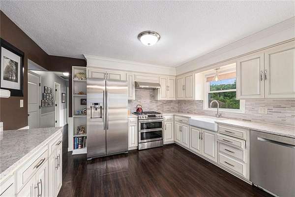 - Dishwasher, Dryer, Exhaust Fan, Gas Range, Microwave, Refrigerator, Stainless Steel Appliance(s), Washer