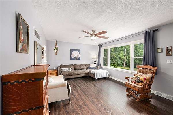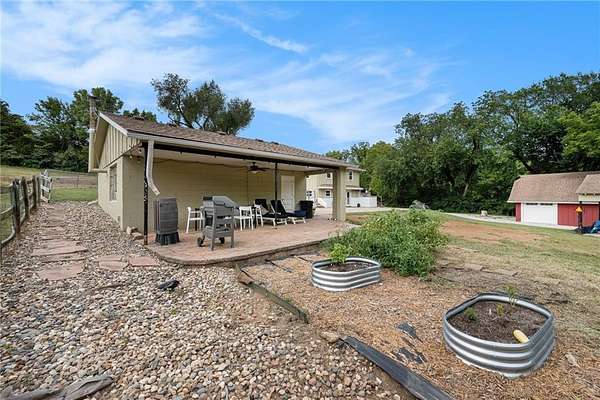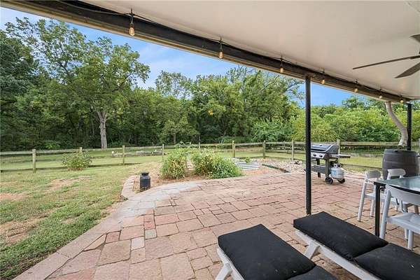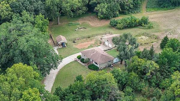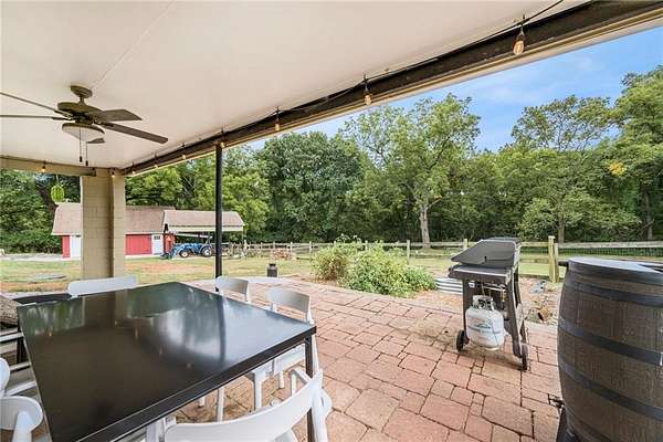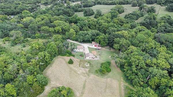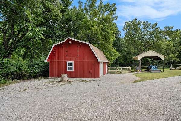 The perfect hobby farm on secluded 9.85 acres just 3 miles north of downtown Shawnee! The home is updated throughout with 2 bedrooms and 2 bathrooms on the main level. There is a non-conforming bedroom and bathroom with shower in the finished walk-out lower level with wet bar and huge living area. The kitchen is updated with quartz countertops, custom wood cabinets, Kohler apron front sink, commercial grade range hood and stainless-steel appliances. High end luxury vinyl plank flooring in the kitchen, living room and hallway. The 30 x 26 barn is upgraded with HVAC, insulated walls/ceiling along with a large loft space great for storage. Built in 1967 this is only the second time this property has been for sale, a unique opportunity for country living in the heart of the city!