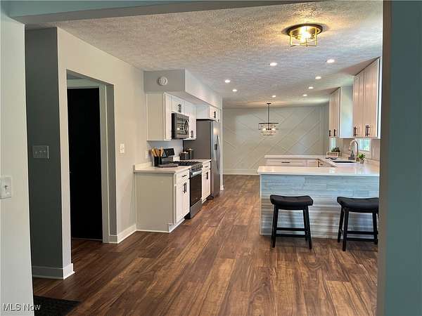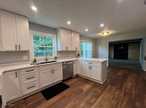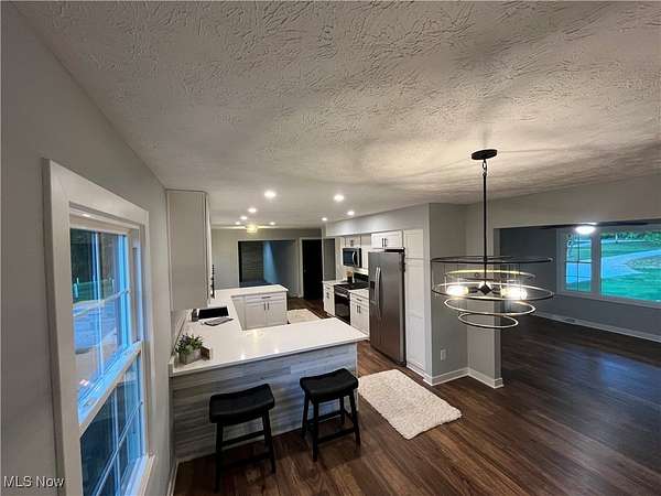 Completely Renovated - Truly Move-In Ready Every inch of this home has been professionally renovated with no detail overlooked and no expense spared. Enjoy the peace of mind that comes from knowing everything - major and minor - is brand new and built to last for years to come. Exterior upgrades include a new roof, siding, gutters, downspouts, septic system, well, driveway, and stamped concrete patio. All windows (including basement glass block) and exterior doors are new, along with WiFi-enabled garage doors and modern exterior lighting. The front patio showcases a beautiful knotty alder wood entry door, matching ceiling, and recessed lighting - the perfect welcome home. Inside, the open-concept floor plan features new luxury vinyl plank flooring, custom trim, upgraded electrical and lighting, and an all-new custom kitchen with Schrock cabinetry, quartz countertops, and new stainless appliances. The formal dining room and two spacious living areas include designer accent walls and a custom gas fireplace with remote and added heat output. New Anderson French doors lead to a stamped patio overlooking wooded acres. All bathrooms are completely redone with new plumbing, electrical, lighting, vanities, custom tile showers, and an oversized soaking tub. Every detail - from matte black solid-core interior doors and custom stair railings to new carpet and insulation - has been thoughtfully finished. The clean, dry 11-course basement includes an updated electrical panel, new hot water tank, water pressure tank, and water softener. Smart-home features include a Google thermostat, video doorbell, and backyard spotlight camera. Sitting on 2 acres, in the highly sought after Highland School District this home offers the rare combination of new construction quality without the wait. Everything is done - simply move in and enjoy worry-free living for years to come.