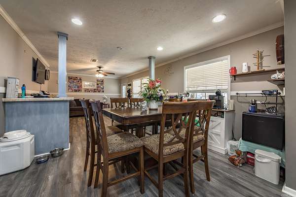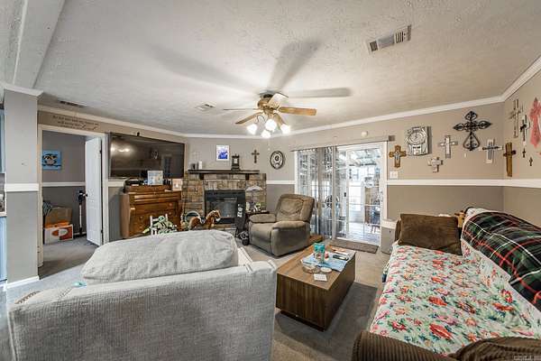 Est $1,233/mo4-bedroom, 2-bath home on 1.55 acres outside city limits. Features an open-concept layout with new flooring throughout, a spacious living room, and a separate den with a wood-burning fireplace. The enclosed back porch adds extra living space, and the covered front porch is perfect for relaxing. Enjoy the 32-foot saltwater pool with deck, plus a 24x40 shop with a 24x20 attached carport--plenty of room for storage, hobbies, or equipment. Roof replaced in 2023. A great property with space inside and out!