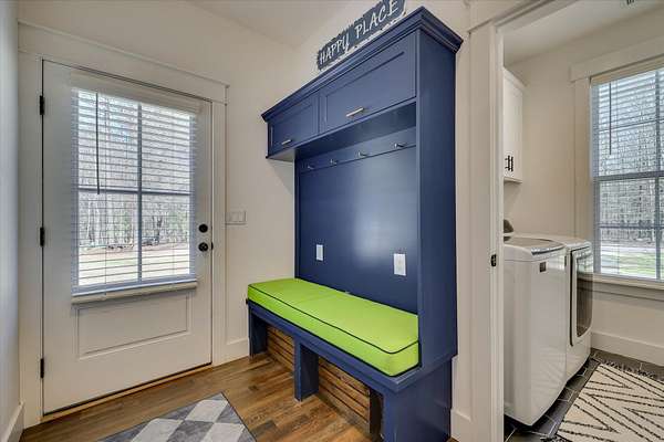 - Blinds, Electric Dryer Hookup, Entrance Foyer, Kitchen Island, Pantry, Utility Sink, Walk-In Closet(s), Washer Hookup, Wired For Data