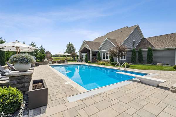 This extraordinary 3,972 sq ft residence offers 5 bedrooms, 6 bathrooms, and a 4-car garage on a rare 2.2-acre lot in town. This home has been thoughtfully enhanced with a custom saltwater pool and a fully equipped pool house featuring a kitchen, bathroom, washer/dryer, and plenty of space for guests or entertaining. The grounds are complete with a personal basketball court and professionally designed landscaping, creating an elegant and highly functional outdoor oasis. Step inside to an open floor plan with sun-filled living spaces. The main floor features an ensuite bedroom, a gourmet kitchen, a bedroom, and a cozy library or office space. Upstairs you'll find, two additional bedrooms and a versatile bonus/playroom. It doesn't stop there! The finished basement includes the 5th bedroom, family room & a projector-equipped bonus room. The home offers a geothermal heating system ensures year-round efficiency and comfort. Situated in a neighborhood with direct access to a scenic walking path, this home perfectly blends modern updates, elegant design, and a sought-after location. Call today to schedule your private tour of this exceptional property!