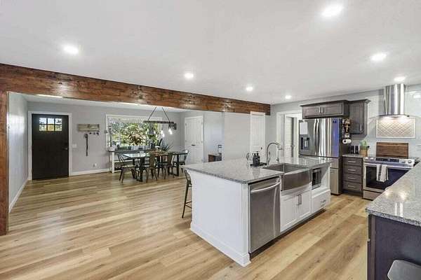 Welcome to country living at its finest, where over 6 acres of pristine land offer the perfect blend of rustic charm and modern convenience. This stunning 3 bedroom,2 bathroom home features nearly 3,000 sq ft of thoughtfully designed living space that will have you wondering why you ever lived anywhere else. Step inside to discover an open concept floor plan that flows seamlessly from room to room. The heart of the home showcases a chef's dream kitchen, complete with a generous granite island that practically begs for dinner parties, beautiful cabinetry, and a walk-in pantry. The kitchen includes stainless steel appliances, including a wine fridge for those well-deserved evenings, complement the stunning farmhouse sink. The split bedroom design ensures privacy, with the luxurious primary suite offering abundant space for oversized furniture and bathed in gorgeous natural light. The primary bathroom feels like a spa retreat, featuring a custom shower, expansive walk-in closet, double sinks, and great storage. Recent updates include new flooring throughout, a plumbed bar in the lounge area perfect for movie nights, and a striking pergola with patio for outdoor entertaining. The property boasts impressive outbuildings including an 8 stall horse barn and a spacious 30 x 40 shop building. With its private setting surrounded by wildlife and convenient access to Clever's amenities including the local high school, grocery shopping, and city park, this property offers the best of both worlds. This is more than a home; it's your personal slice of Ozarks paradise.