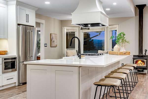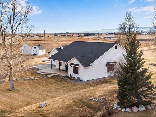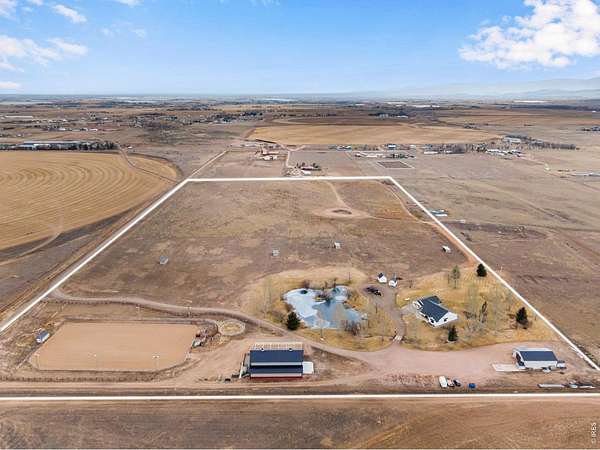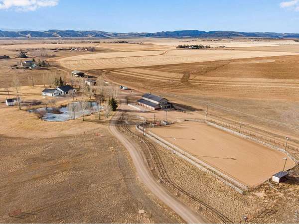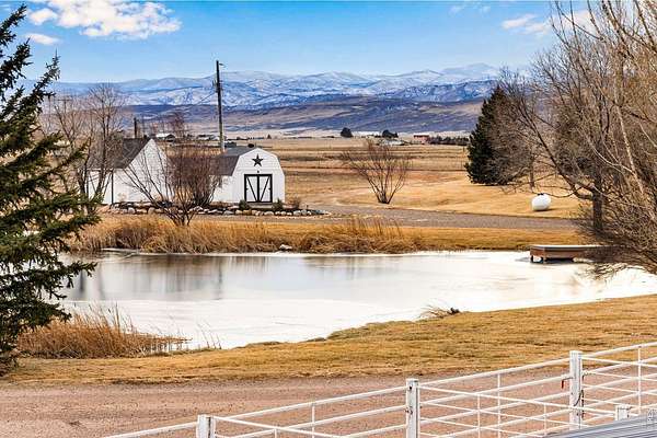 Open House Sat 4/11 from 1-3pm. Exceptional, fully updated equestrian estate on 35.669 acres w/ NO HOA, NO METRO TAX & open zoning. Originally built in 1998 & extensively remodeled in 2023, offering privacy, functionality, & panoramic Rocky Mountain views. This rare property features a stocked pond w/ bass, dock, & sitting areas; 4 fenced pastures; 5 loafing sheds; round pen; 240' x 137' lite riding arena; pump shed; 3 storage sheds; & 8 exterior water hydrants, all accessed by a private driveway set back a .5 miles from the county road for privacy. Equestrian amenities are anchored by a 3,888 sq ft barn featuring 6 stalls each w/ private runs, tack room, wash bay, hay storage, a 2,232 sq ft loft, main-level concrete patio, & upper-level observation deck. A 1,545 sq ft detached drive-through RV/boat garage & shop features 220V, added electrical, air compressor, & included shelving, cabinets, & workbench. The park-like setting includes mature landscaping, sprinkler & drip systems, wood-burning fire-pit, horseshoe pits, expansive east-facing patios for sunrise views, & west-facing covered & uncovered patios w/ ceiling fan overlooking nightly Rocky Mountain sunsets. The primary residence showcases a split floor plan, front office, formal dining, white trim, new windows & doors, upgraded lighting, new paint & carpet. The chef's kitchen features a large island, quartz countertops, SS appliances, 6-burner gas range, commercial hood, double ovens, warming drawer & a walk-in pantry. Living spaces include a family room w/ wood-burning fireplace, oversized bedrooms including a private guest en-suite, 2 beds w/ a Jack-and-Jill bath, & a luxurious primary bedroom w/ retreat featuring a 5-pc. bath, & two walk-in closets. Home also features a massive laundry room designed for everyday efficiency & includes a mini refrigerator & ice-maker. For a full list of features, floor plan, or to schedule a showing, please e-mail brokers
