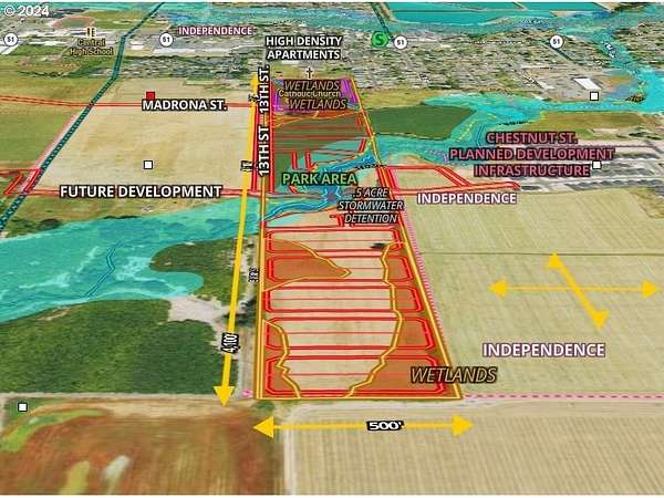 Est $15,011/moResidential Development property being annexed into the city limits w/ an overlay zone designated for a minimum of 9 units per acre. The Planning Dept. expressed willingness and flexibility to concentrate the high-density residential units into a centralized area to comply w zoning minimums. Wetland delineation map is available. The City reportedly has funds set aside for the construction of the Ash Creek Bridge. This is an efficient, square and flat development with services next to the property.