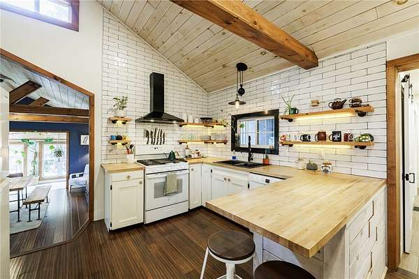 RARE Opportunity! Escape to Your Own Magazine-Worthy Retreat! Welcome to 6120 State Route 19A in Genesee Falls. This Fully Renovated Ranch, Originally 786 Sq Ft, with New Addition it Now Offers 1,340 Sq Ft of Impeccable Living Space on a Private 3+ Acre Lot, Completely Surrounded by Farmland with Its Own Tranquil Pond. Ideally Located Just 4 Minutes from Letchworth State Park, This Property Offers the Perfect Blend of Privacy, Style, and Convenience - Ideal as a Year-Round Residence or BnB Getaway. Step Inside to a Stunning Open Floor Plan Flooded with Natural Light and Character. Vaulted Wooden Plank Ceilings with Exposed Beams Create a Warm, Inviting Ambiance. The Spacious Living Room Centers Around a Dramatic Gas Fireplace and Flows Seamlessly into the All-New Kitchen Featuring Open Shelving, Butcher Block Countertops with Bar Seating, Tiled Backsplash, and Adjacent Formal Dining Area - Perfect for Entertaining. A Heated 3-Season Room with Glass Doors Opens to the 500 Sq Ft Deck and Pavilion Overlooking the Private Pond and Peaceful Countryside. Three Bedrooms, Each with Vaulted Ceilings, Offer Comfort and Style. The Primary Suite Showcases a Spa-Like En-Suite Bath with Floating Vanity, Oversized Tiled Shower, and Jacuzzi Tub. A Beautifully Updated Family Bath Features a Tiled Step-In Shower. Convenient Oversized Mudroom Includes Washer & Dryer. Every Inch Has Been Thoughtfully Updated - From the New Furnace (2023), Hot Water Tank (2022), Roof (2020/2023) to All-New Electrical - Breakers and Underground Service Added - and Plumbing. Exterior Highlights Include New LP Smart Siding, Brand-New Thermal Windows & Doors (2024), and Abundant Storage with a Detached Garage, Carport, and Shed. This Is a MUST SEE...Your Dream Estate Awaits! Offers Due Wednesday, 10/29 at 12pm.