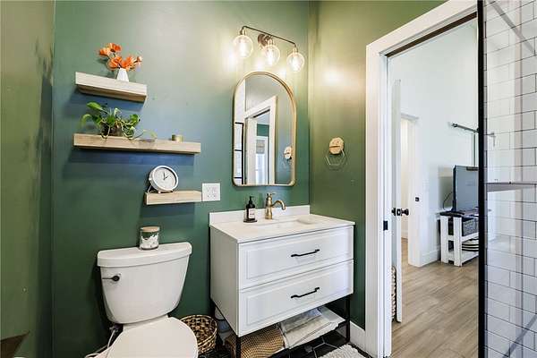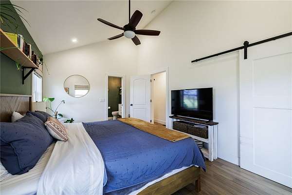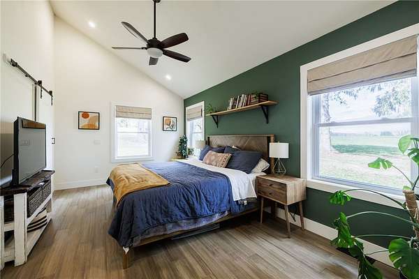 - Bedroom On Main Level, Breakfast Bar, Cathedral Ceilings, Ceiling Fans, Eat In Kitchen, Entrance Foyer, Kitchen Family Room Combo, Main Level Primary, Pantry, Programmable Thermostat, Separate Formal Dining Room, Window Treatments