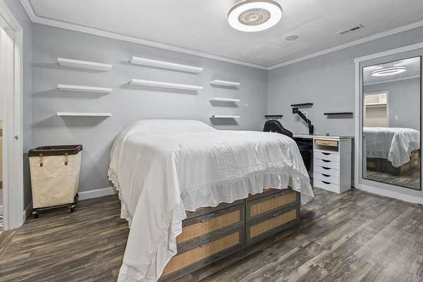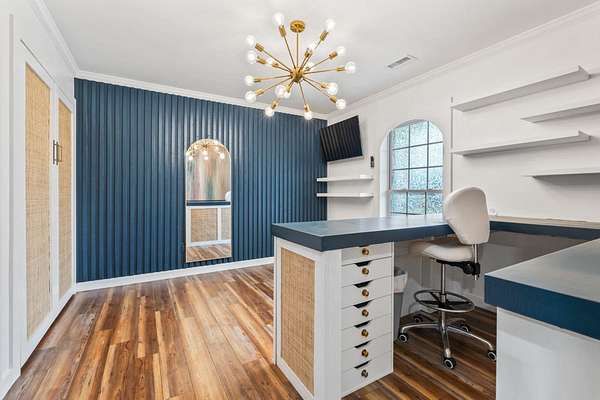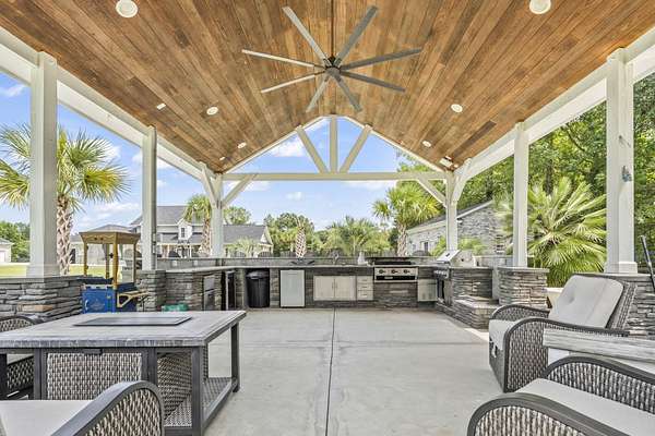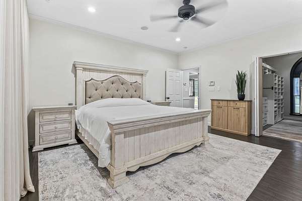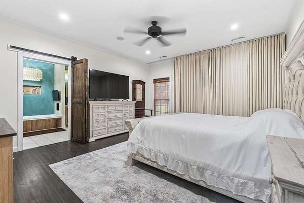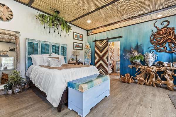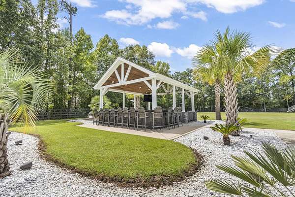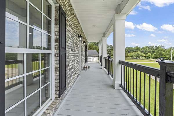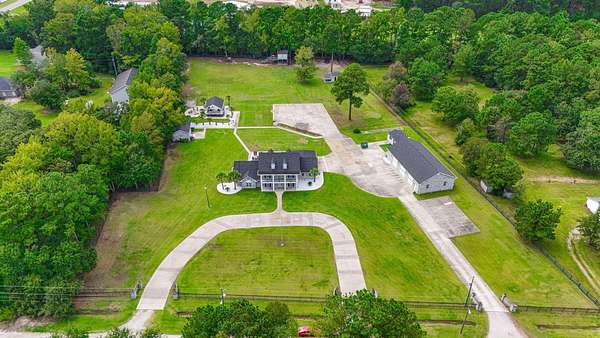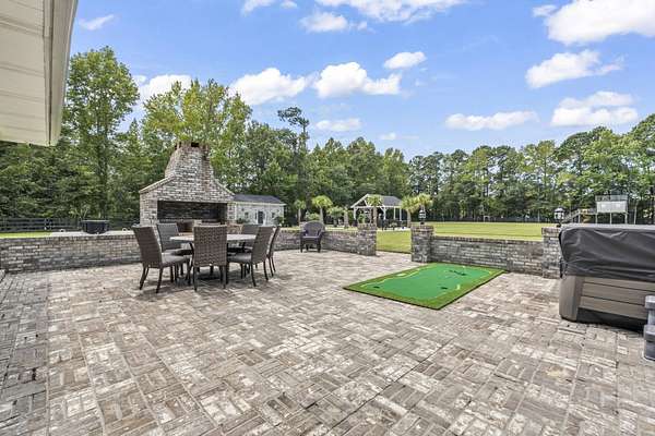 Exceptional all-brick estate set on 3.47 acres in a private, non-HOA community, offering space, luxury, and unmatched versatility. This stunning two-story home features 5 bedrooms, 4 full bathrooms, and 2 half baths, designed with both comfort and functionality in mind. Enjoy relaxing mornings and evenings from the covered front porch and private balcony, adding charm and outdoor living space to this incredible home. Step inside to find luxury vinyl plank (LVP), tile, and wood flooring, a formal dining room, and a spacious living area highlighted by an electric fireplace with a beautiful stone accent wall. The gourmet kitchen is a true centerpiece, complete with modern appliances, a range hood, stylish backsplash, ice maker, breakfast bar, and a walk-in pantry, perfect for entertaining or everyday living. The primary suite, located on the main level, offers a private retreat with backyard access, ceiling fan, spa-like En Suite featuring a double vanity, shower, garden tub, and multiple custom walk-in closets. Also on the first floor: a dedicated office, laundry room, two half baths, along with an attached two-car garage that is fully insulated and equipped with HVAC. Upstairs, you’ll find additional flexibility with a second office featuring a Murphy bed, two more bedrooms, and a full bathroom with double sinks, a vanity, a custom shower, and a separate garden tub. The home also includes a large attic space that is spray foam insulated and fully heated and cooled, offering incredible storage or potential additional living space. Step outside to your private outdoor oasis featuring: Brick patio with hot tub and fireplace. Fully equipped outdoor pavilion with granite counters, two refrigerators, ice maker, propane flattop, grill, a fire pit area, basketball court, and Bluetooth landscape speakers. Guest house with bedroom, and a full-size bathroom with large custom tile shower. The property includes a three-bay detached garage with two 10-ft doors and one 12-ft door, 220 & 110 amp service, plus a private bar and bathroom. There’s also a dedicated Boat/RV storage area. Additional upgrades and features include: Three HVAC systems (two replaced in 2018, one in 2025), all with UV light systems. New roof (2025). Tankless hot water heater. Dual sprinkler systems, and much more. This unique property blends luxury, functionality, and privacy which is perfect for those seeking space to live, work, and entertain. Located close to a public boat ramp to the Intracoastal Waterway, shopping, dining, entertainment, and a short drive to the beach. Square footage is approximate and not guaranteed. Buyer responsible for verification.