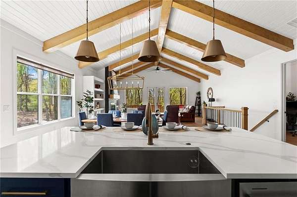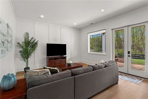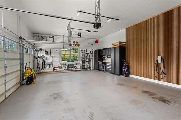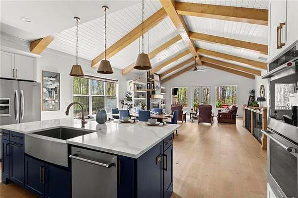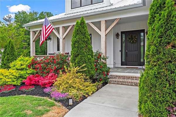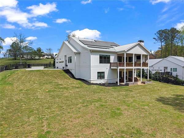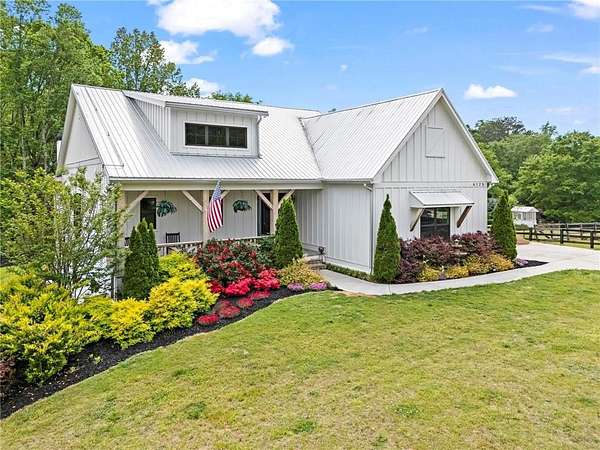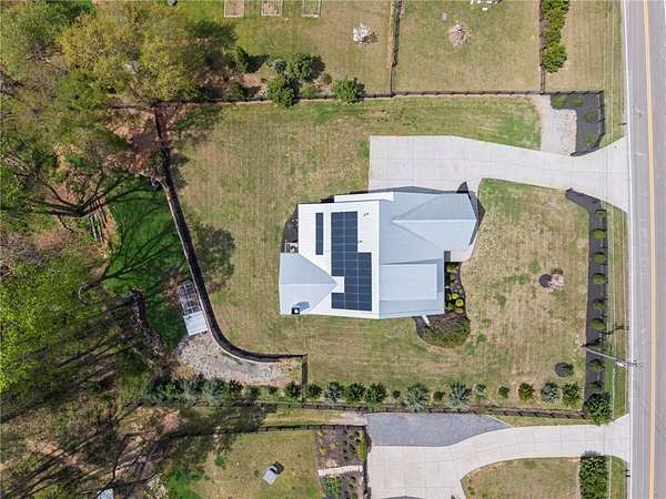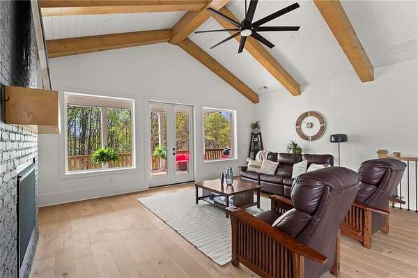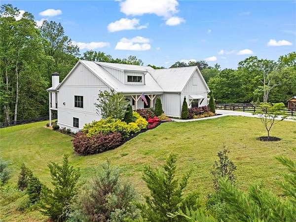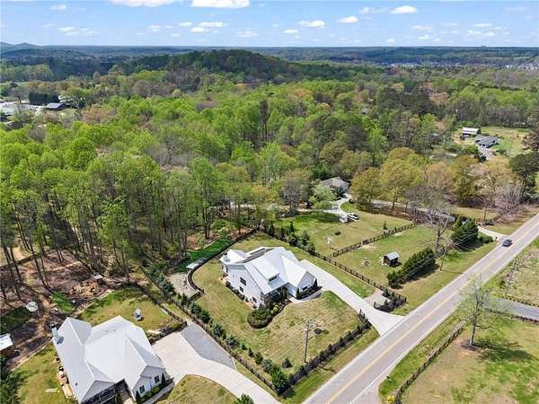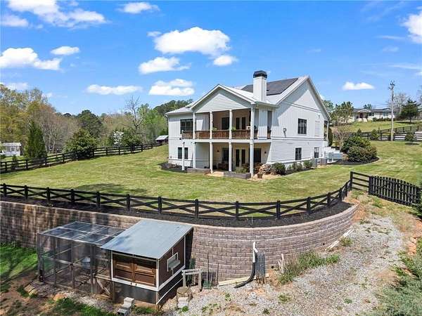Set on a private 2-acre wooded lot in sought-after Cherokee County, this beautifully maintained modern farmhouse offers the perfect blend of style, space, and easy one-level living. The main level is designed for everyday comfort, featuring a primary suite & laundry on the main along with open-concept living spaces that flow effortlessly from the gourmet kitchen to the dining area and family room. Vaulted ceilings with tongue-and-groove detail and hand-hewn beams create a warm, inviting focal point, while the floor-to-ceiling brick fireplace anchors the space. The kitchen is equally impressive with quartz countertops, KitchenAid stainless steel appliances, open shelving, and a spacious walk-in pantry. Just off the main living area, a covered porch with its own fireplace provides the perfect setting to relax and take in the peaceful wooded views. Downstairs, the finished terrace level offers incredible flexibility, including a fully insulated room currently used as a golf simulator (included with the sale) and a dedicated home gym-ideal for recreation, fitness, or hobby space. Additional bedrooms and living areas provide plenty of room for guests or family. The outdoor space is just as special, featuring a chicken coop that can convey with the property, adding a charming, functional touch to this mini-homestead lifestyle. The expansive lot offers privacy, level green space, wooded views, and room to expand or add a pool. This home is also equipped with solar panels that power the entire property, offering little to no electricity costs, plus the ability to support two EV chargers in the garage-a rare and valuable feature. Enjoy the best of both worlds with a serene setting that's still incredibly convenient-less than 10 minutes to Publix, just around the corner from local favorite Union Hill Grill, and only a scenic 20 minutes to Avalon, Downtown Alpharetta, and Downtown Crabapple -all with the added benefit of low Cherokee County taxes. A rare opportunity to own a thoughtfully designed home that combines modern efficiency, functional living, and peaceful surroundings.