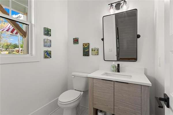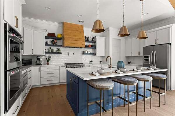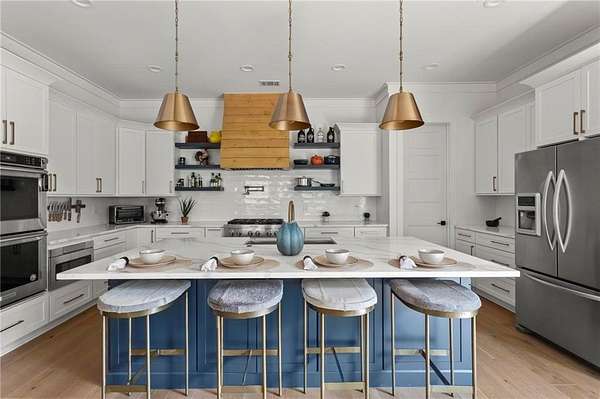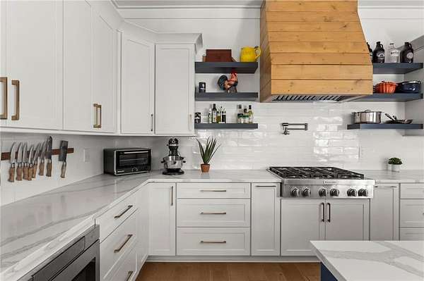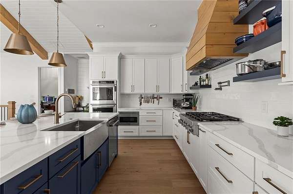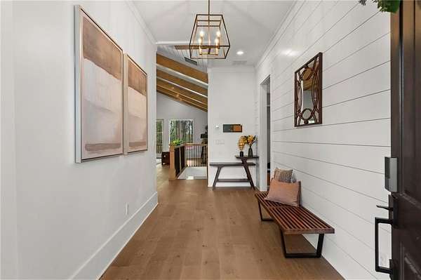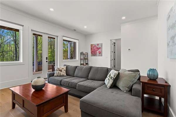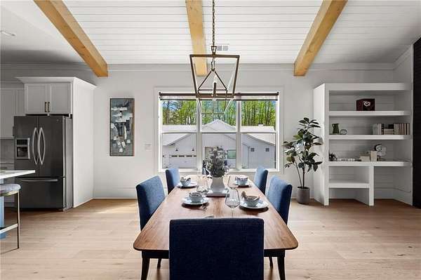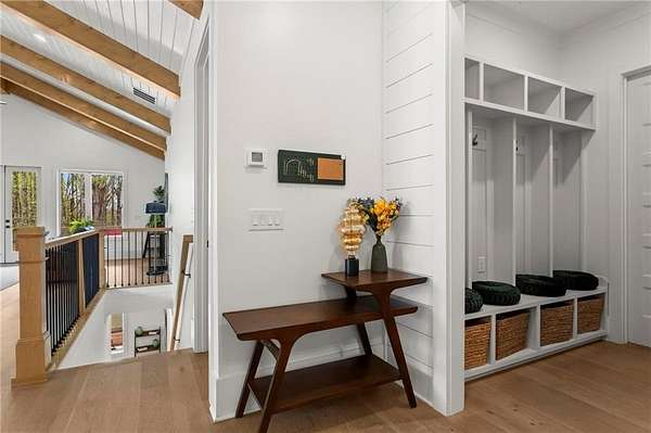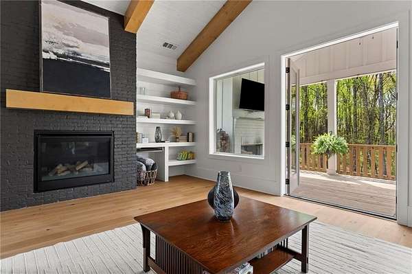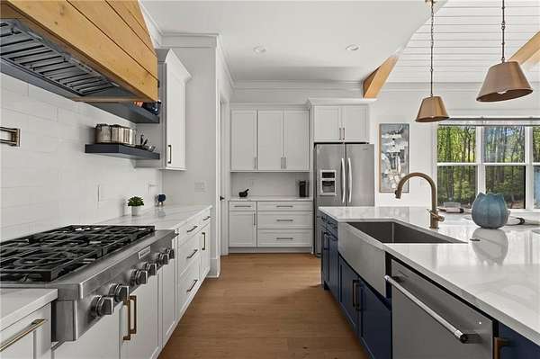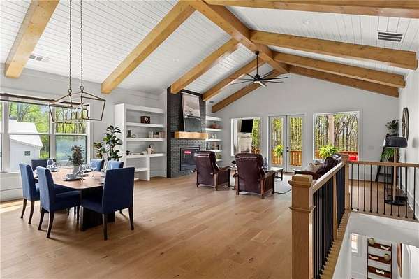 Set on a private 2-acre wooded lot in sought-after Cherokee County, this beautifully maintained modern farmhouse offers the perfect blend of style, space, and easy one-level living. The main level is designed for everyday comfort, featuring a primary suite & laundry on the main along with open-concept living spaces that flow effortlessly from the gourmet kitchen to the dining area and family room. Vaulted ceilings with tongue-and-groove detail and hand-hewn beams create a warm, inviting focal point, while the floor-to-ceiling brick fireplace anchors the space. The kitchen is equally impressive with quartz countertops, KitchenAid stainless steel appliances, open shelving, and a spacious walk-in pantry. Just off the main living area, a covered porch with its own fireplace provides the perfect setting to relax and take in the peaceful wooded views. Downstairs, the finished terrace level offers incredible flexibility, including a fully insulated room currently used as a golf simulator (included with the sale) and a dedicated home gym-ideal for recreation, fitness, or hobby space. Additional bedrooms and living areas provide plenty of room for guests or family. The outdoor space is just as special, featuring a chicken coop that can convey with the property, adding a charming, functional touch to this mini-homestead lifestyle. The expansive lot offers privacy, level green space, wooded views, and room to expand or add a pool. This home is also equipped with solar panels that power the entire property, offering little to no electricity costs, plus the ability to support two EV chargers in the garage-a rare and valuable feature. Enjoy the best of both worlds with a serene setting that's still incredibly convenient-less than 10 minutes to Publix, just around the corner from local favorite Union Hill Grill, and only a scenic 20 minutes to Avalon, Downtown Alpharetta, and Downtown Crabapple -all with the added benefit of low Cherokee County taxes. A rare opportunity to own a thoughtfully designed home that combines modern efficiency, functional living, and peaceful surroundings.