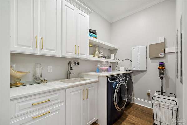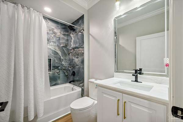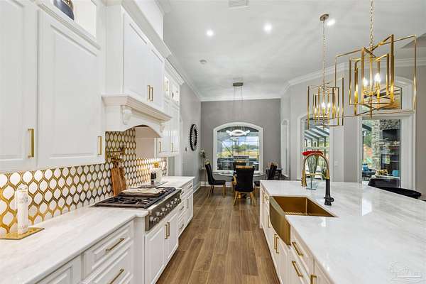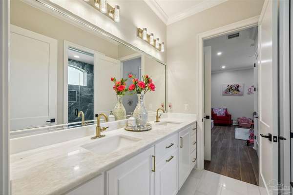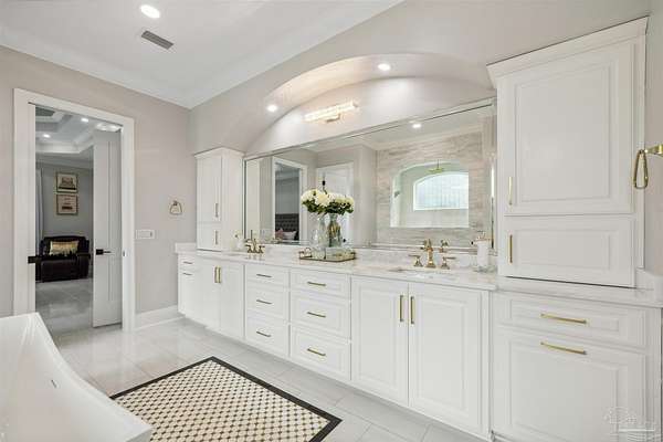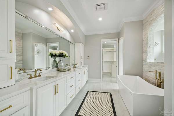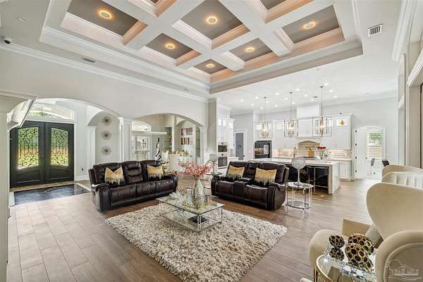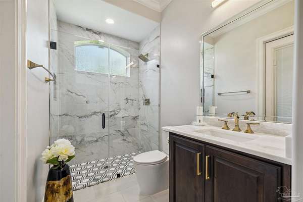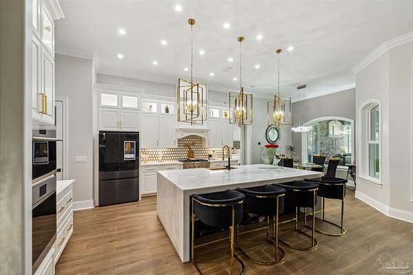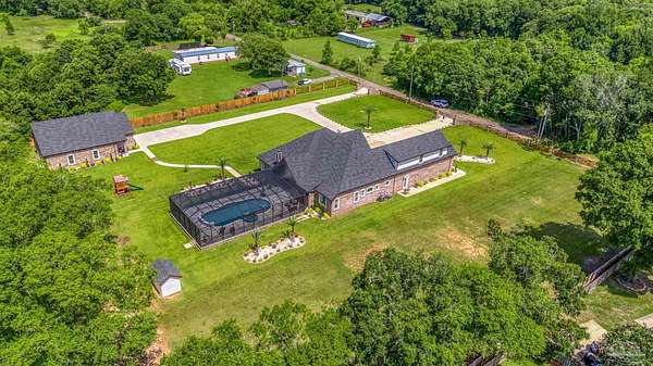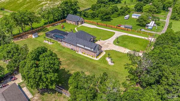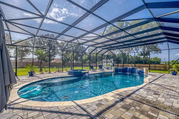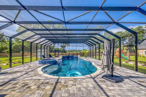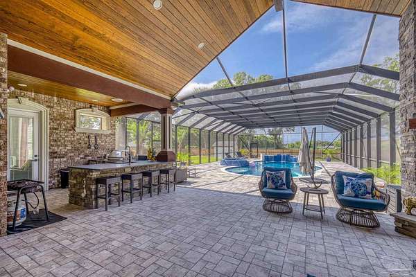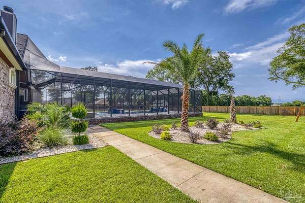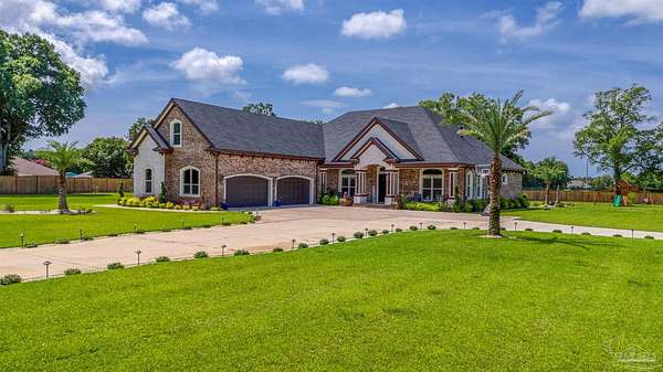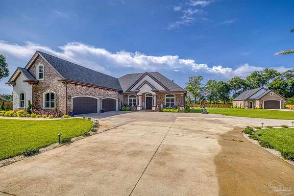 This over 5,000 sq ft custom built 7/5 home located in the heart of Pensacola and our beautiful white beaches is absolutely STUNNING. When you drive up to this estate -- the garage is completely finished and wired for 2 A/Cs and a 1/2 bath. As you open the gorgeous custom front door you walk into an open plan with an amazing view of the office, dining area, living room and luxurious chef's kitchen & island that has all the bells & whistles. With a beautiful view of the outdoor living/pool/spa area. The lighting and fixtures in this home are custom to say the least. To the right 2 Bedrooms with jack&jill bath and a full bath with access to outdoor area. To the left is the Master Suite with an expansive high-end bath with Marble and Custom walk in shower/wet room and Closet is a absolute dream. Laundry is off the kitchen and stairs to upstairs large sitting/living area & game area extends to 2 bedrooms & 2 Custom Bathrooms which follows into 2 large rooms that continues into a massive heated & cooled storage/multi-purpose room. There is nothing Builder's Grade in this home -- The large separate 2 story building has so much potential -- Electricity/Plumbing and 1/2 bath as well as partially finished upstairs area could be finished to make it your own. Sprinkler system keeps the grounds lush for this over 2 acres allows you privacy & plenty of room to entertain family & friends. Home has spray foam throughout. Words cannot give an accurate portrayal of this one of a kind home -- it is a must see!!!!! ADJACENT LOT -- 1.91 Acres for sale as well.