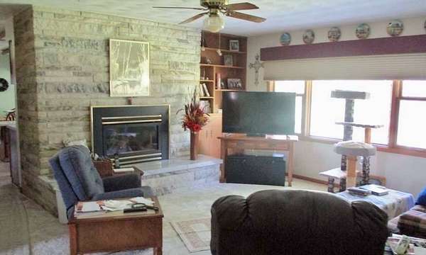 This immaculate 5 bedroom, 3.5 bath brick ranch home offers over 4,500 sq ft of living space on 3.8 acres, blending small-town convenience with wide-open privacy. From the moment you arrive, you'll notice the meticulous care - manicured lawn, underground sprinklers, mature trees, and a welcoming front porch. Inside, the main level boasts a spacious living room centered around a marble fireplace and custom built-in shelving. A bright formal dining area and large eat-in kitchen provide plenty of room for family gatherings. The home includes a dedicated laundry room, abundant built-in storage, and two main-level bathrooms showcasing timeless tilework in excellent condition. The finished basement extends the living space with multiple family/rec rooms, a wall of bookshelves, additional bedrooms, bathroom, and extensive storage options - including built-in shelving, utility rooms, and even a secure safe. Outdoors, the acreage is set up for both relaxation and utility. A red outbuilding with overhead door provides room for equipment, hobbies, or workshop space. The two-stall attached garage, paved driveway, underground sprinklers, fenced yard, and thoughtful landscaping add to the property's functionality. Recent updates include two water heaters (2024 & 2019), a water softener system, and well water for independence and low utility costs. This home isn't just spacious - it's been cared for with pride and designed for lasting comfort. Properties of this caliber in Rushville are a rare opportunity to own. Call us today for more information or to schedule a tour!
