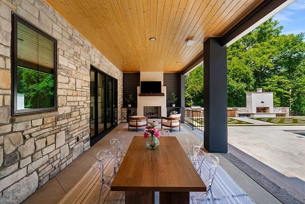 Must see "Chateau Soleil" one owner, one of a kind custom newer luxury const. Rare PRIVATE Estate Enclave (approved for Gated Entrance)- 2+ Private ACRES IN FRANKLIN, TN. NO LUXURY FEATURE LEFT OUT! Premium homesite backing to treed forested common space. This exquisite residence offers 5 generously sized ensuite Brms, 3 half baths, theater w/ surround sound, 3 bonus rooms - one on the main level w/ separate entrance possible in-law suite w/ kitchen; chef's kitchen (w/ high end Miele appliances, grand quartz-topped center island, 2 sinks; custom vent; 2 dishwashers, central vac., high end plumbing fixtures, a custom walk-in pantry with floor-to-ceiling cabinetry), 5 wine fridges, 3 fps; large formal dining for 12+; beautiful built ins; fully customized closets; soaring 20 ft ceilings w/ beams plus ceiling treatments; office w/ views. Step outside to a entertainer's dream: treelined sanctuary w/seamless indoor/outdoor living w/ 4-panel sliders to extended covered porch to saltwater gunnite pool w/ tanning ledge, spa, cold plunge, smoker, grill, 2 fireplaces, pizza oven. Room to build possible tennis courts or guest/pool house. Zoned for Top Schools: Ravenwood, Clovercroft, & Woodlands. (Step outside to your private, tree-lined sanctuary, where a custom saltwater pool with tanning ledge, hot tub, and cold plunge await. The outdoor kitchen is a true entertainer's dream, boasting a built-in smoker, gas grill, pizza oven fireplace, and refrigerator--all set on an expansive travertine patio. Appraised for $5.1 million- unmatched privacy, outdoor living and luxury.