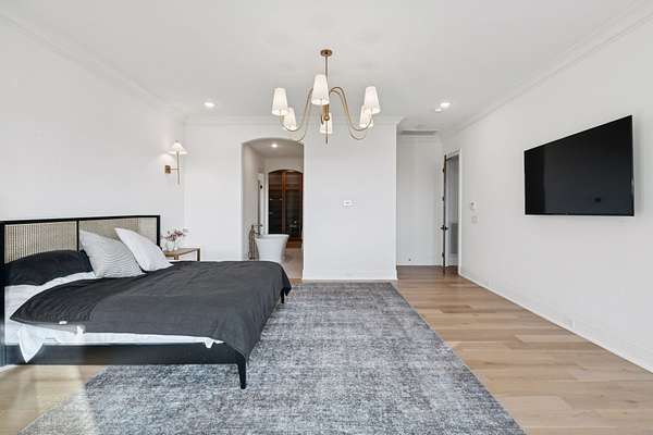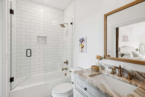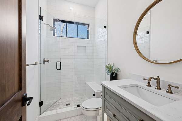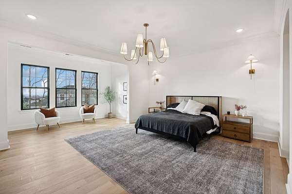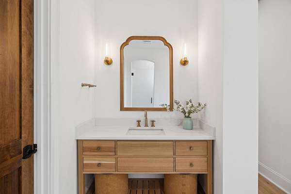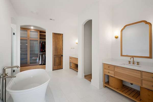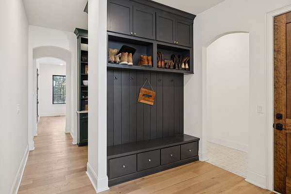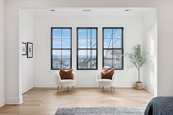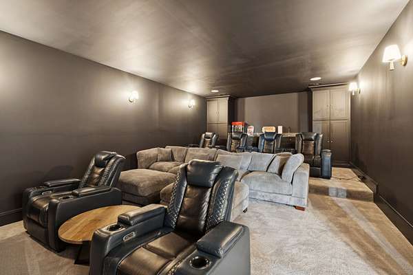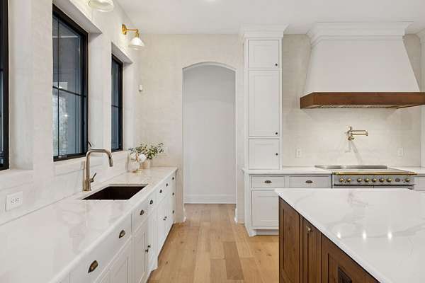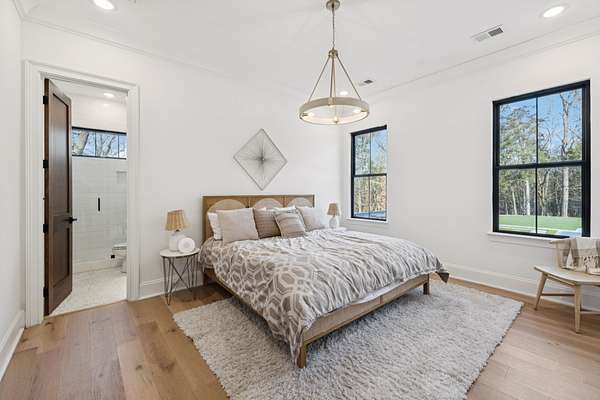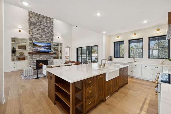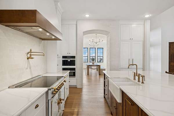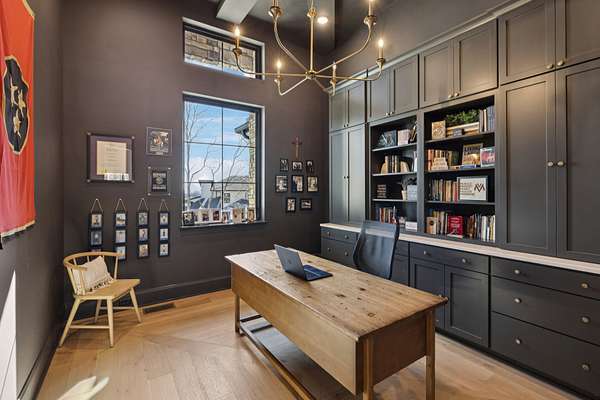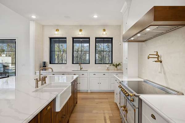 Open House Sat 3pm-5pm! Nestled in the highly desirable Lookaway Farms community, this exceptional custom-built luxury estate rests on 2+ private acres backing to peaceful, treed common space. Situated within a rare private enclave approved for a future gated entrance. Step inside to grand soaring ceilings accented by beautiful wood beams and impeccable details throughout. A private office sits behind custom wood doors. The spacious living room showcases built-in bookcases and a stacked-stone floor-to-ceiling gas fireplace. The chef's kitchen boasts abundant white cabinetry, quartz countertops, custom vent hood, tiled backsplash, full sink and prep sink, top-of-the-line Miele appliances, pot filler, two dishwashers, and an oversized island. The home also features a central vacuum and a fully customized walk-in pantry with floor-to-ceiling cabinetry. The luxurious primary suite offers a private sitting area overlooking the serene backyard. The ensuite bath features separate vanities, a freestanding soaking tub, a dual-entry walk-in shower with rain head, and a custom walk-in closet. An additional ensuite bedroom is conveniently located on the main level. The main floor is completed by an elegant sitting area with a full wet bar featuring custom cabinetry, wine refrigerator, and prep sink--ideal for a game room or wine lounge. Upstairs, you'll find three additional spacious ensuite bedrooms, each with full bathrooms and custom walk-in closets, along with a second laundry room. The upper level also features a dedicated movie theater with surround sound and a bonus room with access to a private balcony. Step outside to an entertainer's paradise designed for seamless indoor-outdoor living. Expansive four-panel sliding doors lead to an extended covered porch and resort-style saltwater gunite pool complete with tanning ledge, spa, and cold plunge. The outdoor kitchen is fully equipped with a smoker, grill, fireplace, and pizza oven, all set on an expansive travertine patio.