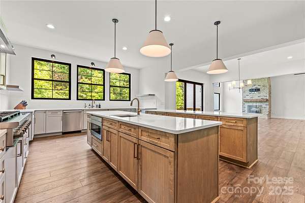 Escape to your PRIVATE OASIS with this LUXURIOUS stunning brick home nestled on approximately 31.97 acres displaying breathtaking views. Immerse yourself in the tranquility of nature while enjoying the convenience of being a reasonable drive from Lake James, the breathtaking Linville Gorge, and the picturesque South Mountains. Step into a world of grandeur in the magnificent 2-story great room, complete with a spiral staircase leading to a catwalk & spacious loft. Off the loft is a large bonus room, additional full bathroom, and oversized walk-in storage closet. Two additional linen closets and 3 bedrooms provided upstairs, each with a full bathroom and walk-in closet. Prepare to be awestruck by the professional-grade kitchen equipped with an extended gas range, dual ovens, a professional-sized refrigerator and freezer, two large sinks, and separate beverage faucet, double islands, and a butler's pantry connecting dining & morning rooms allowing for seamless entertaining.