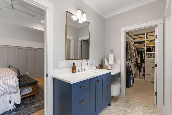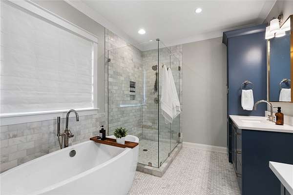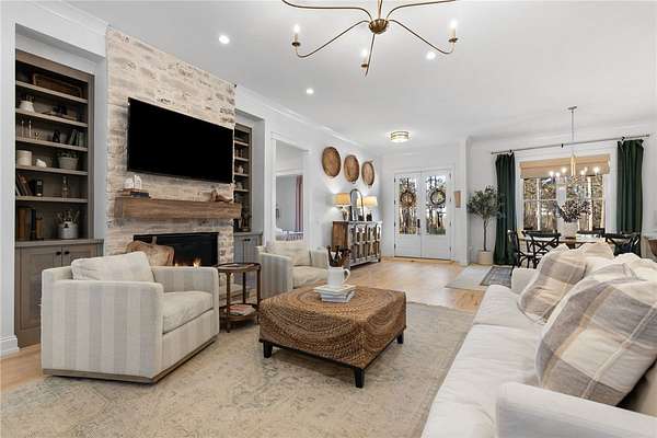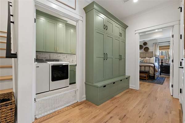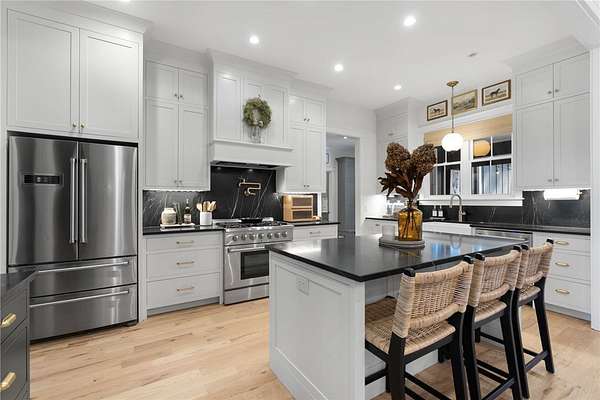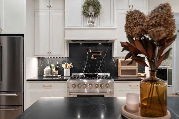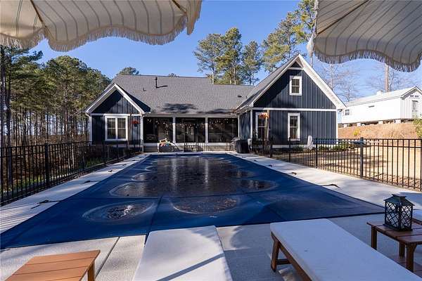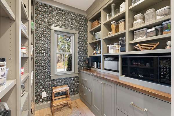 An architectural masterpieces set on 2.69 private acres, in the sought after lakefront community of Harbor Point, this thoughtfully designed 4-bedroom, 3-bath home blends elevated finishes with everyday livability-anchored by a show-stopping saltwater pool and effortless indoor-outdoor flow. The heart of the home is a beautifully appointed kitchen with luxurious soapstone countertops and backsplash, inset cabinetry to the ceiling, and a Thor 6-burner natural gas range, featuring a brass pot filler. A wallpapered walk-in pantry with wood countertops and a tucked-away appliance garage keep things both polished and practical. The main living areas feature 10-foot ceilings, high-end hardwood floors, and crown moulding throughout and feature a fabulous custom built in desk space complete with file & printer cabinets. The primary suite is a true retreat, with board-and-batten detailing, and a spa-inspired bath with dual vanities, a soaking tub centerpiece, a large tiled walk-in shower, and herringbone marble tile flooring. The generously sized closet features an incredible built-in closet system complete with custom jewelry drawers, laundry hamper pull-outs & shoe cabinets to the ceiling. Two secondary bedrooms are thoughtfully positioned on the opposite side of the home, flanking an oversized bathroom with dual sinks, ample custom cabinetry storage, and a classic tiled tub surround. A stylish laundry room continues the home's design story with stone backsplash, and more custom cabinetry seamless tucked behind the locker-style mudroom entry from garage. Upstairs, the fourth bedroom en-suite offers the perfect space for a home office, guest suite, or fitness room. Step outside to enjoy the 8-foot-deep saltwater pool, perfectly positioned off the screened porch-ideal for both entertaining and everyday fun. The backyard also includes ample green lawn space, natural wooded privacy, and an outdoor fire pit for evenings under the stars. Additional parking pad spaces add convenience for guests, boats, or extra vehicles. The epoxied garage features an additional storage closet, while behind the scenes, a 3-stage whole-house water filtration system with UV light and a newly encapsulated tall crawl space with dehumidifier provide peace of mind and extra storage. Located in Harbor Point, a gated community just minutes from the Stamp Creek public boat ramp, this home offers the rare opportunity to enjoy a newer custom build on a large private, wooded lot with curated upgrades throughout-perfectly positioned to begin your Lake Keowee lifestyle.