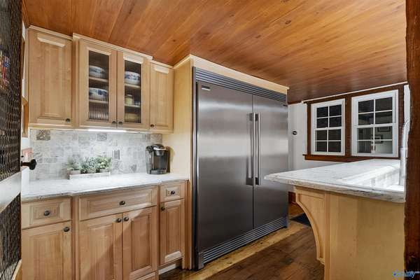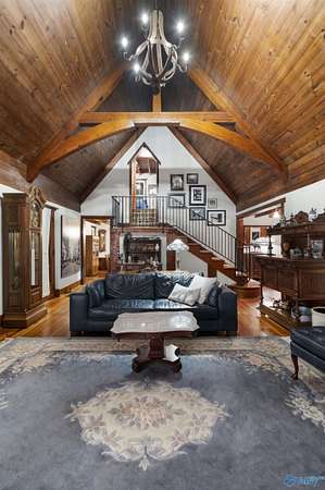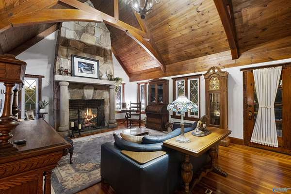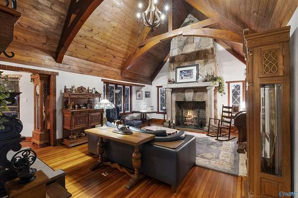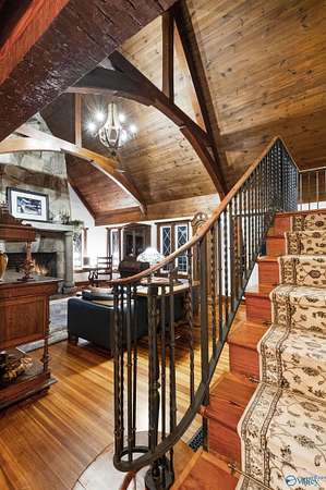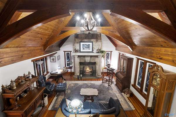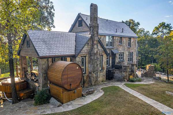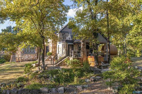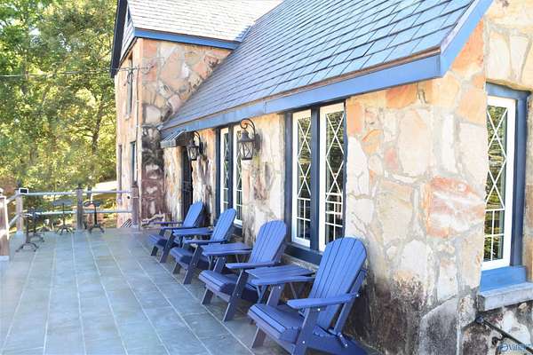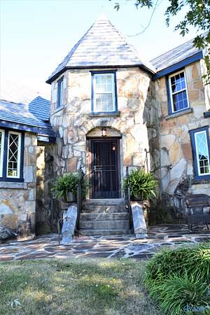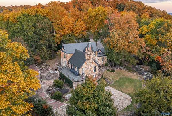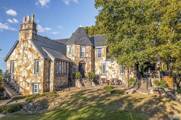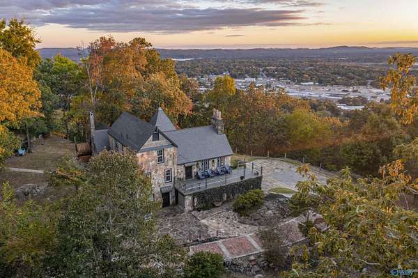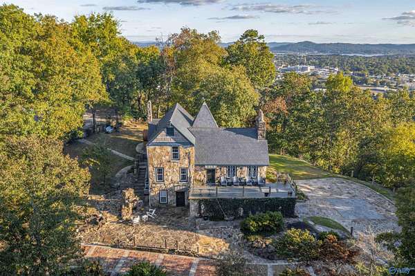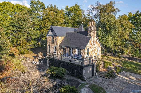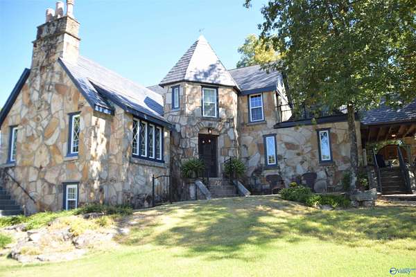 Mtn-Stunning English Manor Retreat on the edge of Lookout Mntn. Elegant Rock Home sited on 4.8+/-ac of privacy & seclusion w/magnificent views.This storybook setting showcases; wrought iron gated entrance w/stone pillars opening to brick & stone driveway; Home feat 4BR/3BA w/old world stone work. Foyer, LR w/vaulted ceiling w/magnificent beams, stone fp w/stone pillars & 7ft mantle, LR opens to the 400sqft porch w/ slate tile; Gourmet Kit w/ss prof appl, quartz c-tops, c-top induction & gas c-top blk graphite sink, maple cabinets, Formal DR w/exp rafters, Mst Suite w/ huge WI closet & balcony; stairway w/ cpt runner. Add'l acreage available.