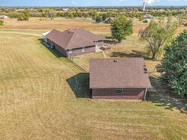 Peaceful country living on 5 beautiful acres in Davenport Oklahoma! Located just East of Chandler, with quick access to the Turnpike, Wal-Mart, Atwoods and more! This home offers both privacy and accessibility. You are welcomed with an open pallet of lawn and landscapes! I semi-wrap around porch plays host to the welcoming committee of visitors! Interior includes fresh paint, an inviting layout, and comfortable living. Living area with porch access, ceiling fan, and plenty of window space to see who is coming up the drive! Kitchen AND home stand out with gorgeous blonde oak cabinetry, electric cooking, microwave hood, and classic countertops! Expansive pantry is just outside the kitchen area! Primary bedroom includes two closets, ceiling fan, and en suite is dressed for success! Dual vanities, jetted corner tub, shower, and an abundance of counter to cabinet storage! Secondary beds all have ceiling fans and ample closet storage! Secondary bath holds a single vanity and shower-tub combo! A huge backyard retreat will entertain the masses with ease! A workshop, man-cave, or she-shed includes 220 and 110 power, while plumbing has been brought just to the outside of this shop, which includes a walk-in and roll-up door! In-ground shelter just off the patio door for ease of access and safety! Many well-thought updates complete your off-the-grid living or a dialed-in fiber connection to those you care about and shows you stream! Roofing updated in 2020. HVAC is a 2025 replacement. Updated faucets in 2018/19, sinks in 2024, and garbage disposal in 2023! Septic cleaned in 2025 and the City pipes-in your water! Convenient garage and carport parking complete your dream home!