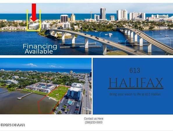 TWO LOTS FOR THE PRICE OF ONE! 613 & 618 HALIFAX!! MARINA IS APPROVED!! A rare, exciting opportunity for a luxury waterfront property, 613 Halifax is located at the heart of Daytona Beach's tourist district and redevelopment area - a developer's dream! The property sits at the base of the Seabreeze Bridge where coastal luxury meets River to Ocean. The 123' x 361' site features 132 linear feet of direct water frontage. The property has been approved for a 36-unit condo development with 39 boat slips. Double the fun with the adjacent property across the street 618 Halifax adding a total of 42,849 Sq. Ft. = 1 Acres +/- of developable land between both lots. Owner financing is available with qualifying firms, Joint venture is considerable.