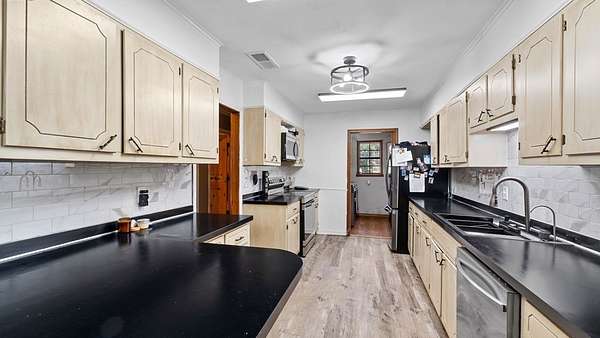 Est $1,627/moWelcome to 613 Red Oak Road! This Redwater home sits on almost 2 acres and features a split bedroom layout. In addition to the primary living space, the home also has a large secondary living space that could easily be a workout room, craft space or 4th bedroom! Outside you can enjoy the fenced in yard, workshop and pond! This home has recently had an exterior update, complete with a new roof! Come see this charming home for yourself!