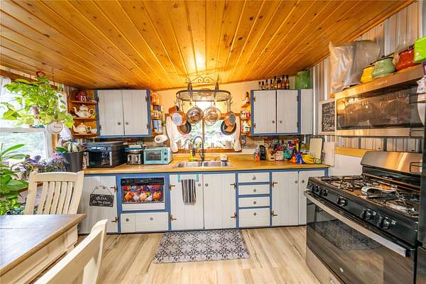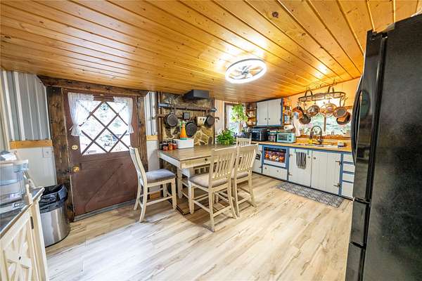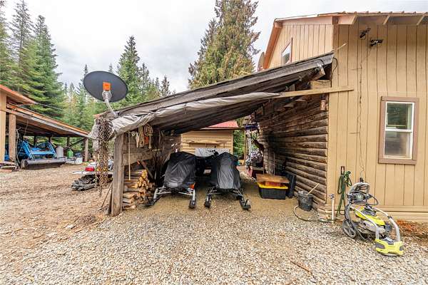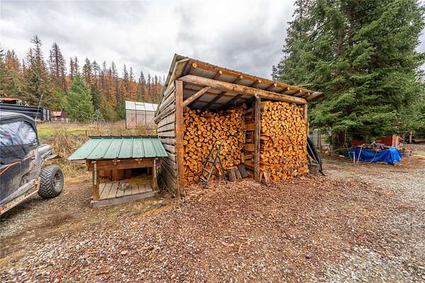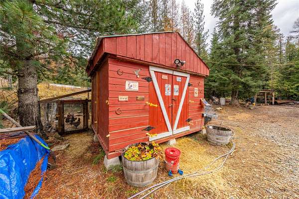 Mini farm on this 3.48-acre property in the lower Yaak Valley. 3 bedrooms, 1.5 bath home has rustic charm & has been updated to make everything comfortable. All updated full bath with heated floors, on demand water heater & laundry. Also new 1/2 bath in Ensuite & walk in closet. Utilities on main floor, 2 bedrooms on main level with 3rd on the loft area. Kitchen with deck to enjoy outside entertaining. Numerous outbuildings, 28x24 garage and shop, heated and with power. 30x14 RV storage with power, Gazebo with power in the yard for entertaining. 24x8 Container for storage, and a large woodshed, chicken house & green house. Plus 17-foot covered area for a sawmill, and a few more outbuilding for your storage needs. Property has app. 1 acre of cleared land that could be used for pasture and barn area. Bring your animals. Toss in that it is within walking distance to Yaak River & millions of acres of USFS land for snowmobiling, horse riding, hunting and all your recreational needs. Woodland Mills HM22 Sawmill could be purchased outside of the contract.