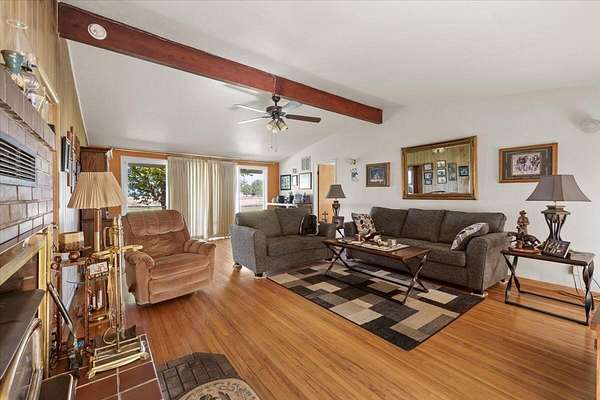 This horse and farm property zoned EFU, sits on 5 level, irrigated acres which are fenced and has a 2-stall barn with tack room. Room for large garden, RV parking and 3-car garage. From this peaceful spot, you will enjoy gorgeous views of the Table Rocks. This 1961 built home offers over 1600+ sq. ft. of the classic ranch style with a split floor plan, including vaulted ceilings in the living room with hardwood floors and 2 large sliders that bring in natural light, 3 bedrooms with wood lined closets, 2 full bathrooms. Lots of original charm. Additional highlights include a 3-car garage with a workbench area. Relish the serenity of country living while staying close to shopping, restaurants and medical.