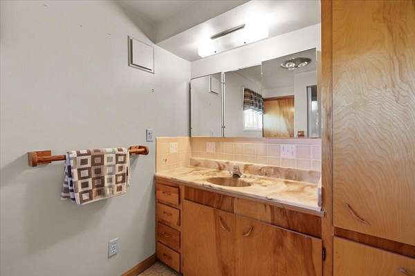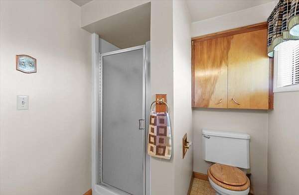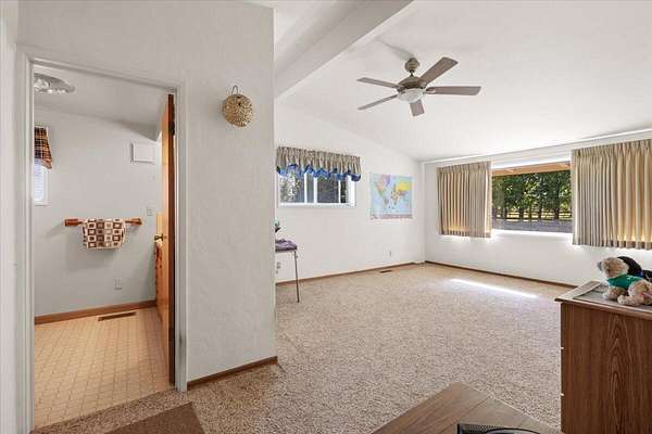 - Ceiling Fan(s), Laminate Counters, Linen Closet, Primary Downstairs, Shower/Tub Combo, Vaulted Ceiling(s)