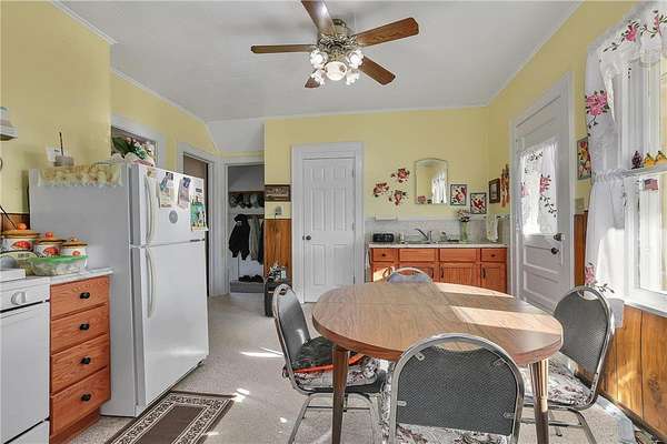 The property includes multiple outbuildings and sheds, ideal for hobby farming, storage, or workshop space. Long-term tenants of over 50 years have made numerous updates over time, improving the home’s efficiency and overall utility.
