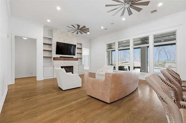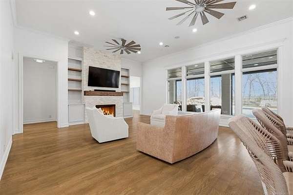 Come home to luxury and tranquillity just across the river in the coveted gated Eagle Rock community. This sprawling estate consists of a full brick home situated on just over 3.25 secluded acres with mature trees and a wooded greenbelt creating a tranquil oasis. The original home was built in 2015 prior to undergoing a 1M+ renovation in 2023 adding an additional master ensuite featuring his/her closets, walk in shower, soaker tub and a fireplace in the bedroom with exquisite views of the pool and mature trees creating a private retreat, all new wood floors, an additional two car garage with epoxy floors, pool with water feature and slide, outdoor kitchen, category 4 designer shingle roof and wrought iron fence surrounding the property. The home features 6 beds/5full baths, 2 half baths, 2 home offices and 5 car garage. There are two true primary suites + guest and two offices down, 3 beds and 2 full baths up with a game room/media, this estate is designed for a large family, a second primary suite for generational living and an open concept for entertaining. Horses and additional residence are permitted.