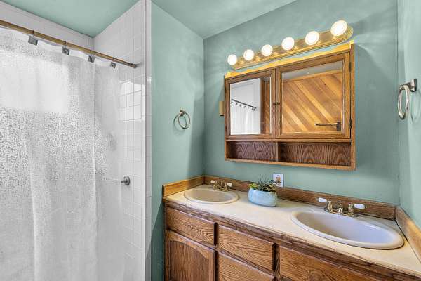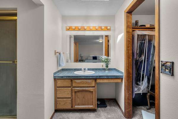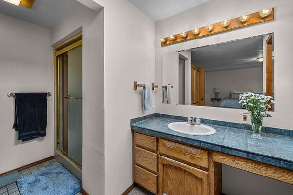 - Breakfast Bar, Ceiling Fan(s), Double Vanity, Fiberglass Stall Shower, Laminate Counters, Linen Closet, Pantry, Shower/Tub Combo, Tile Counters, Tile Shower, Walk-In Closet(s), Wired For Sound