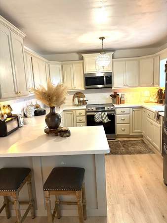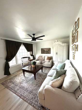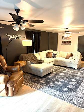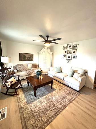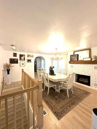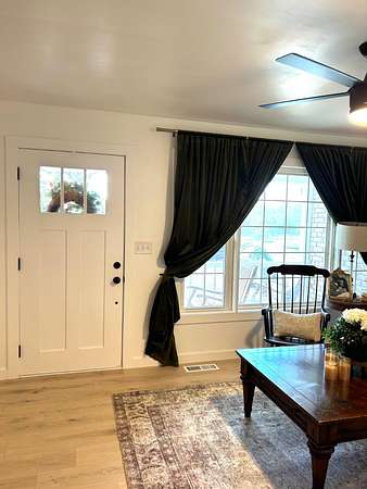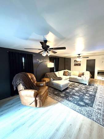 This beautiful fully remodeled home offers the perfect blend of modern updates and spacious living. With 5 bedrooms and 3 bathrooms, it's ideal for families needing room to grow. Step inside to find the perfect spaces with new flooring throughout, fresh paint, and stylish finishes. The kitchen features modern appliances and flows seamlessly into the dining area, making it perfect for entertaining. A cozy gas fireplace adds warmth and charm. The home offers two living rooms, a convenient downstairs laundry room, and large bedrooms with plenty of closet and storage space. Outside, enjoy 2.1 acres with plenty of room to relax or play. The two door garage and additional outbuilding/workshop provides ample storage and workspace. Major updates include a new roof (2020), ensuring peace of mind for years to come. In addition, 2024-2025 Updates include: Replacing the main sewage line, water heater ,Full house water softener, water pressure reducing valve ,all new flooring and carpet, new toilets, upstairs bathrooms have new tubs, tile, faucets, vanities and sinks, solid surface kitchen and bathroom countertops, kitchen sink and tile backsplash, All new lighting and ceiling fans throughout, light switches and outlets, 2 new Lift Master garage door motors, buttons and railings with remotes and push button access wall attachment at the entrance into the garage, all new exterior and interior doors, all new trim, entire pantry updated with custom floating shelves, new cabinets, shiplap walls, and new butcher block countertops, framed in closet where breaker box is located, new cabinets above the washer and dryer, new tile in laundry room and bathroom, custom shelves in upstairs hallway, entire stairway updated with custom wood. This beautifully updated home is MOVE-IN READY and waiting for its new owners!