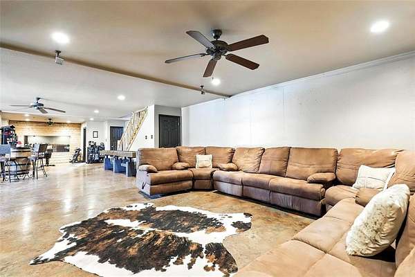 Tucked into the hillside in Millsap, this private ranch is built for those who want space, functionality, and a connection to the land. At the center of the property is a unique 3-story stone home, nestled into the hillside and designed for comfortable living and entertaining. The walk-out basement serves as a man cave or game room, complete with a half bath, ideal for relaxing or hosting. The main floor includes two primary bedrooms, a primary bathroom, a full guest bath, a spacious living room, a functional kitchen, and a laundry area. Upstairs, a loft space overlooks the living area and leads to two additional bedrooms, each with their own private full bathrooms, offering plenty of space for family or visitors. Step outside and you'll find everything set up for enjoying time outdoors. A pool and hot tub sit just off the back patio, with a pool house that includes a half bath and shower. The outdoor kitchen and stone fireplace make this a great space for gathering year-round. All of the rock used in the fireplace, pool area, and retaining walls was sourced directly from the property. For livestock or equipment, the property is ready to go. A 40' x 50' shop offers room for tractors, trailers, and tools. The horse barn includes four 12'x12' stalls, a tack room, and is connected to working pens with a cattle chute. The pasture has been cut for hay, providing extra forage for cattle, horses, or other animals. Whether you're looking for a functional ranch setup or a peaceful escape, this property delivers the space, privacy, and infrastructure to make it happen.