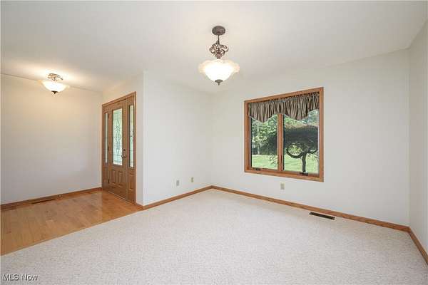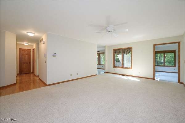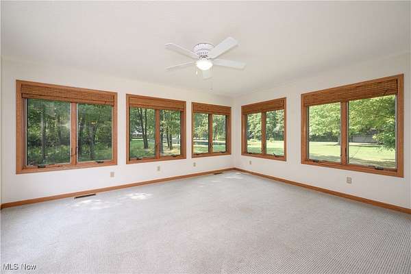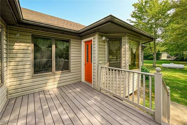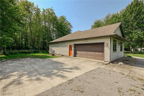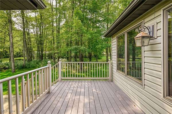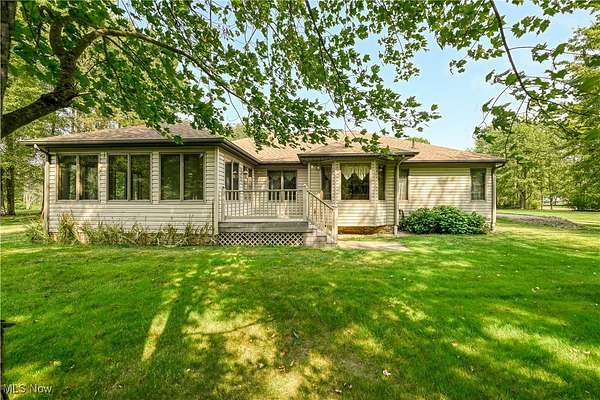 Quality built ranch home in Hiram township set on 5.5 acres of mostly wooded land. 3 bedrooms and 2 full baths with a split floor plan. The inviting entry with hardwood floors and a coat closet welcomes you in. The Dining room is to your left with a chandelier and the living room straight ahead. From there the attached sun room is the place to be with all the windows and natural light. All rooms have ceiling fans. The primary Bedroom with attached bath is handicap accessible with extra wide doors and zero entry shower. Dual sinks and a walk-in closet finish out the primary bath. 2 other bedrooms and a bath on the opposite side of the house. The full bath in the hallway offers a soaking tub/shower combo. The Kitchen has oak cabinets and is fully applianced with an eat-in kitchen and breakfast bar. In the basement you will see the 2x6 construction and extra insulation which help to make this home more energy efficient. You can enter the basement either through the hallway in the house or from inside the attached 2 car garage with side entry. The basement has an extra course of block and is a blank slate for anything you need it for. You will be shocked how big it is with additional crawl space under the sun room. Choose from the front porch for siting and relaxing or the back deck, both are great to soak up the peaceful setting. Carpets recently cleaned and neutral paint round out this move-in ready, rare ranch find!