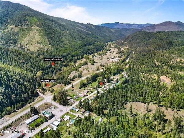 From I-90, take Kingston Exit 43. Head north on CDA River Rd for 23 miles. Turn right onto Prichard Creek Road for 6 miles to Murray. Left onto Kings Pass Rd, then left onto Prichard Creek St.