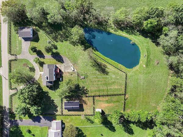 *Back on the Market due to buyer changing their mind before inspections* Discover your dream retreat in this delightful 1.5-story house with a finished basement and 2 kitchens. This home is perfectly situated on 5.42 acres of beautiful paritally treed land. This property extends past the tree line and offers a unique blend of comfort and rural charm, making it ideal for those seeking a peaceful lifestyle with plenty of outdoor space. This home has plenty of natural light with 2 story ceilings and skylights that create a welcoming atmosphere. Relax by a 1 acre stocked private pond for those fishing adventures. Plenty of room for gardening or recreation, not to mention starting a mini-farm with a goat shed and horse barn with 3 stalls and tack/feed room already on the property. The 2 car detached garage has plenty of room for whatever your heart desires. And talk about location, this home is only 7 minutes from Richmond Center shopping and restaurants. This property is a rare find,, combining the best of country living with the comforts of home. One of the sellers is a licensed realtor.