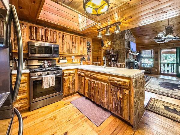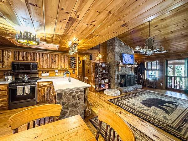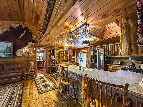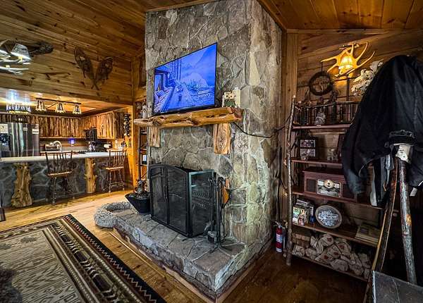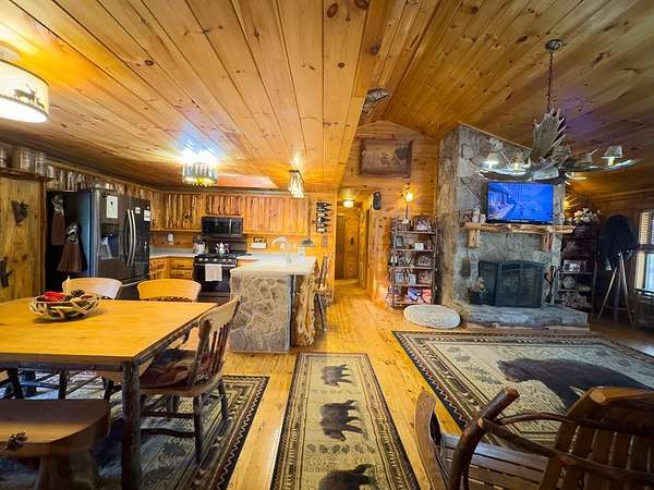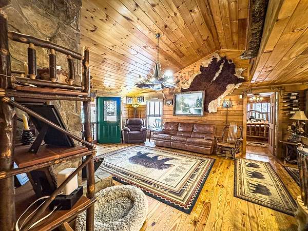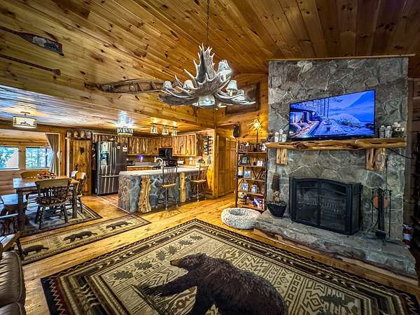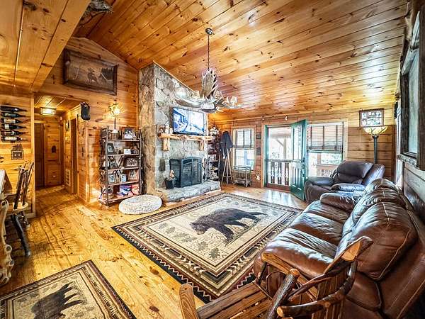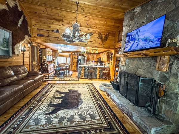 Lodge-Style Cabin on Nearly 7 Acres with Creek, Small Pond & Income-Producing Guest Cabin Tucked away on 6.60 acres of beautiful, rolling and wooded land, this inviting cabin offers the perfect blend of rustic charm, thoughtful details, and modern comfort. A peaceful creek borders one side of the property, leading down to a storybook setting with a small pond and natural rock formations — a serene spot to relax and take in the sounds of the mountains. The main home features 2 bedrooms and 2 full baths with quality touches throughout — from the stone wood-burning fireplace in the great room to the custom handrails on the porch. There's even a second fireplace in the family room, perfect for cozy evenings in. Outside you'll find a fire pit, storage buildings, a two-car carport, parking space for a large RV with 50 amp plugin and plenty of space to enjoy the land around you. The guest cabin adds tremendous flexibility, featuring an efficiency kitchen, one bath, and its own private back deck. Currently operating as an established Airbnb for the past five years, it's a proven income-producing property or could easily serve as a mother-in-law suite or private guest retreat. Extras include Fiber Optic High-Speed Internet, a Eufy Security System, Generac Standby Generator, Choice Home Warranty (covering appliances, the well, and hydrospa), and a new Aspen Hydrospa for relaxing under the stars. All this in a great location with easy access to town, yet tucked away enough to offer peace, privacy, and that true mountain feel. A rare find that checks all the boxes for comfort, character, and convenience.